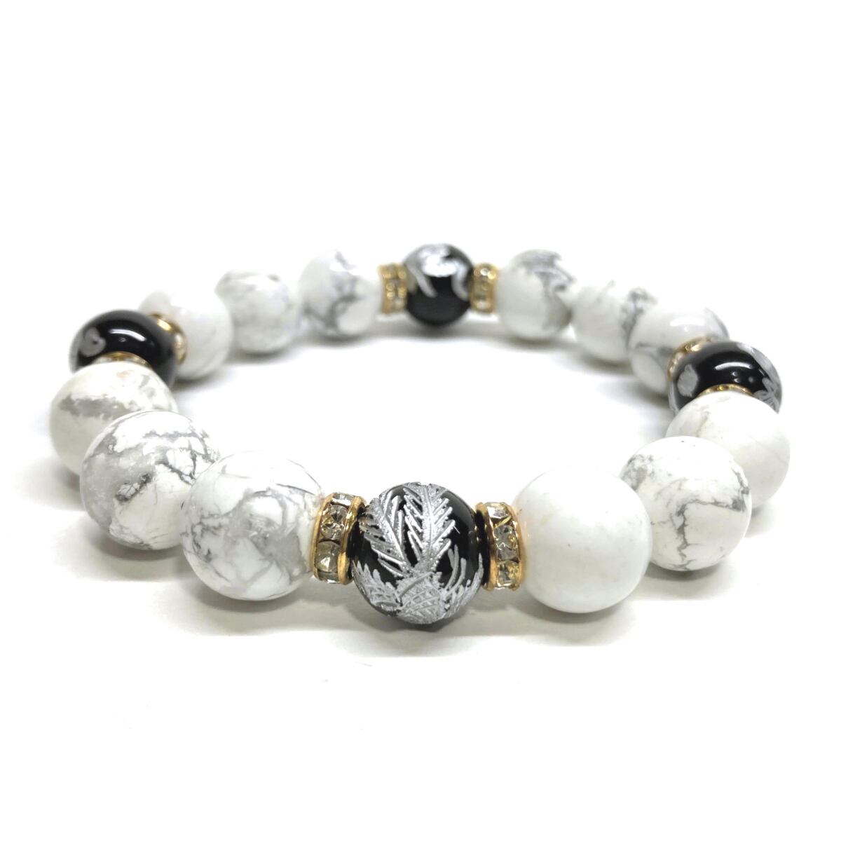 ご覧頂いているブレスレットは、四神獣銀彫オニキスとハウライトを組み合わせたブレスレット。守り神である四神とパワーストーンの組み合わせで運気の流れを引き寄せる強運ブレスレットです。シンプルなデザインで男女問わず、年齢問わずご使用頂けるデザインなっております。シンプルなデザインは日常のアクセントとして、仕事やビジネスカジュアル、パーティーや特別なイベントなど様々なシーン活用できます。また、ちょっと贈り物にも最適なブレスレットになっております。四神獣を身につけて厄災から身を守り、多くの運気を呼び込まれてください。