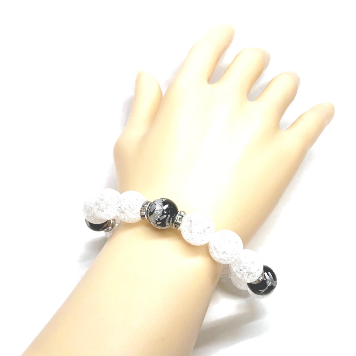 12mm 四神獣銀彫オニキス×クラック水晶 パワーストーン ブレスレット天然石 運気上昇 開運 ☆ 健康運 厄払い お守り 青龍 白虎 玄武 朱雀 (シルバー)メンズ・レディース 男性・女性 数珠ブレス 開運 ☆