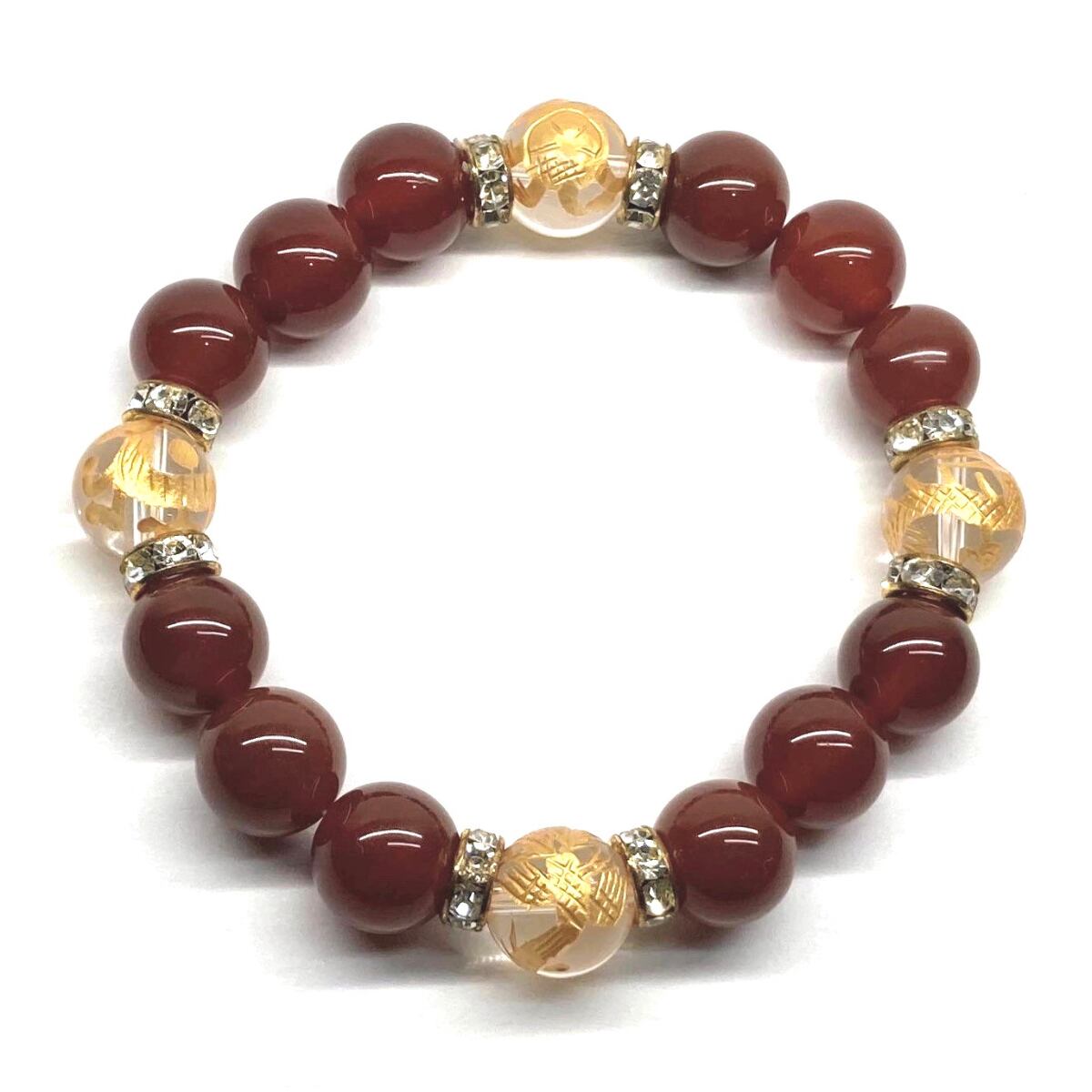 ご覧頂いているブレスレットは、四神獣金彫水晶と赤瑪瑙を組み合わせたブレスレット。守り神である四神とパワーストーンの組み合わせで運気の流れを引き寄せる強運ブレスレットです。シンプルなデザインで男女問わず、年齢問わずご使用頂けるデザインなっております。シンプルなデザインは日常のアクセントとして、仕事やビジネスカジュアル、パーティーや特別なイベントなど様々なシーン活用できます。また、ちょっと贈り物にも最適なブレスレットになっております。四神獣を身につけて厄災から身を守り、多くの運気を呼び込まれてください。