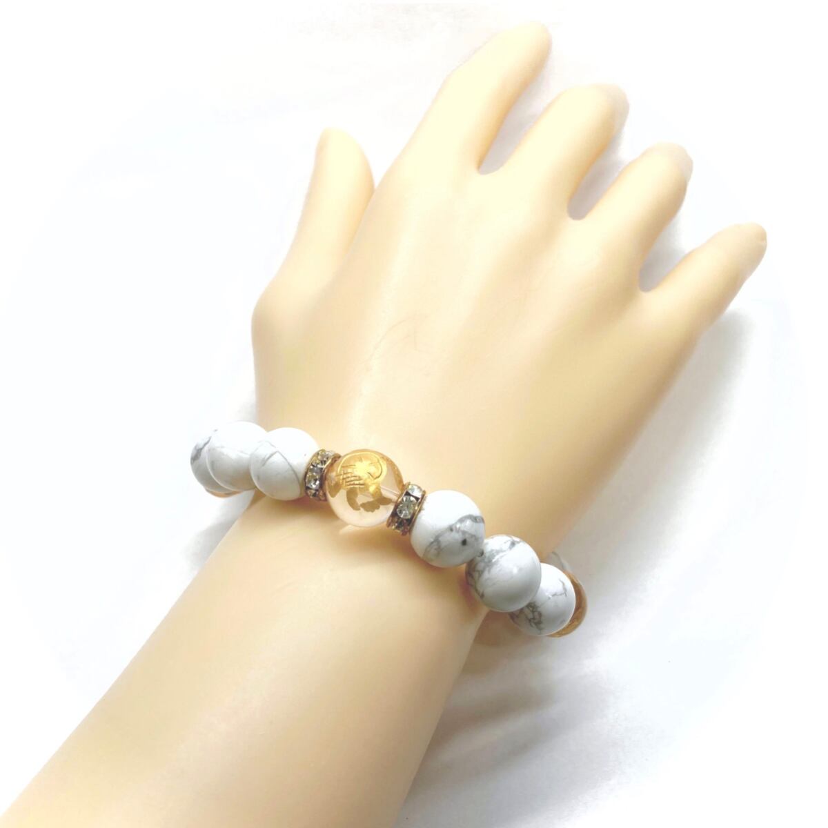 ご覧頂いているブレスレットは、四神獣金彫水晶とハウライトを組み合わせたブレスレット。守り神である四神とパワーストーンの組み合わせで運気の流れを引き寄せる強運ブレスレットです。シンプルなデザインで男女問わず、年齢問わずご使用頂けるデザインなっております。シンプルなデザインは日常のアクセントとして、仕事やビジネスカジュアル、パーティーや特別なイベントなど様々なシーン活用できます。また、ちょっと贈り物にも最適なブレスレットになっております。四神獣を身につけて厄災から身を守り、多くの運気を呼び込まれてください。