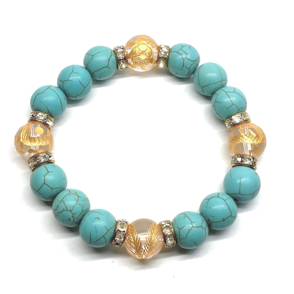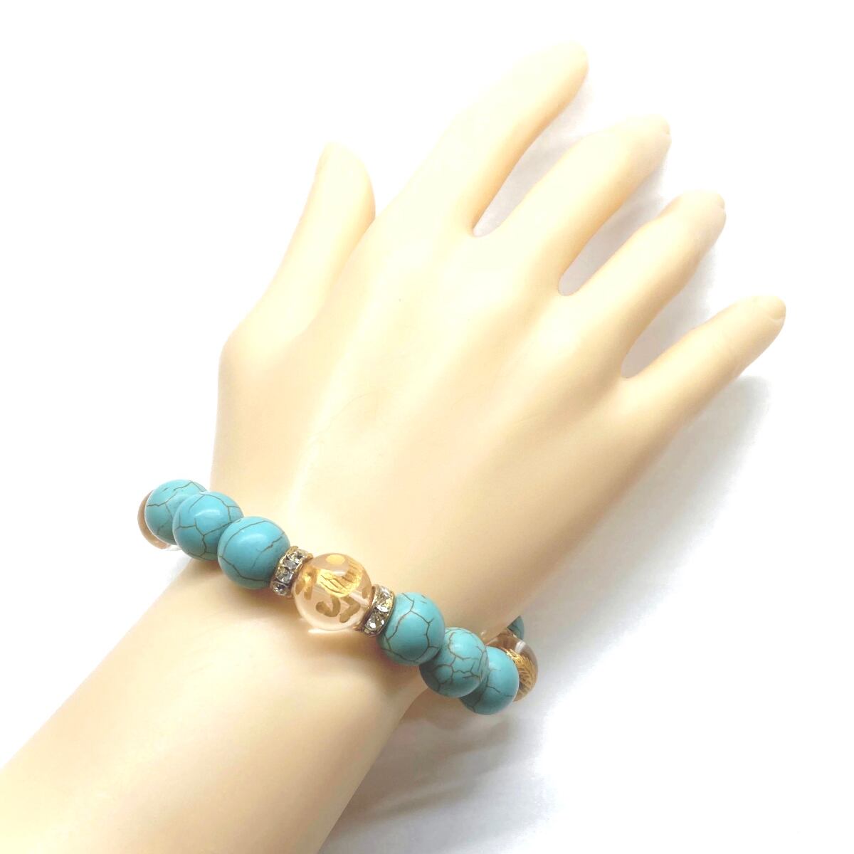 ご覧頂いているブレスレットは、四神獣金彫水晶とターコイズを組み合わせたブレスレット。守り神である四神とパワーストーンの組み合わせで運気の流れを引き寄せる強運ブレスレットです。シンプルなデザインで男女問わず、年齢問わずご使用頂けるデザインなっております。シンプルなデザインは日常のアクセントとして、仕事やビジネスカジュアル、パーティーや特別なイベントなど様々なシーン活用できます。また、ちょっと贈り物にも最適なブレスレットになっております。四神獣を身につけて厄災から身を守り、多くの運気を呼び込まれてください。