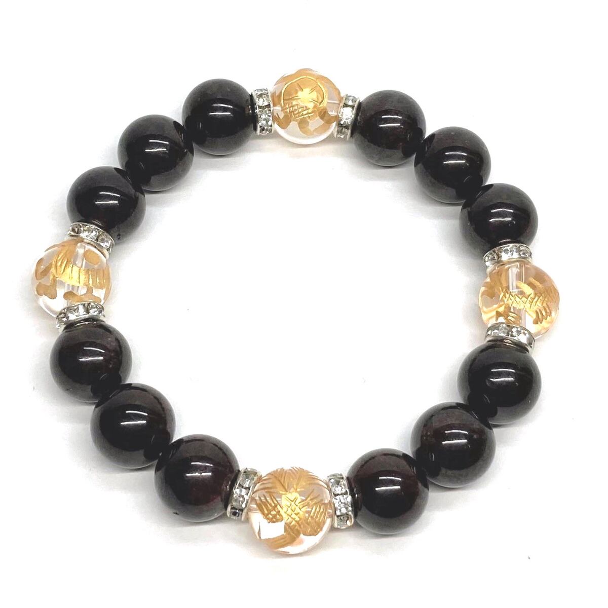 ご覧頂いているブレスレットは、四神獣金彫水晶とガーネットを組み合わせたブレスレット。守り神である四神とパワーストーンの組み合わせで運気の流れを引き寄せる強運ブレスレットです。シンプルなデザインで男女問わず、年齢問わずご使用頂けるデザインなっております。シンプルなデザインは日常のアクセントとして、仕事やビジネスカジュアル、パーティーや特別なイベントなど様々なシーン活用できます。また、ちょっと贈り物にも最適なブレスレットになっております。四神獣を身につけて厄災から身を守り、多くの運気を呼び込まれてください。