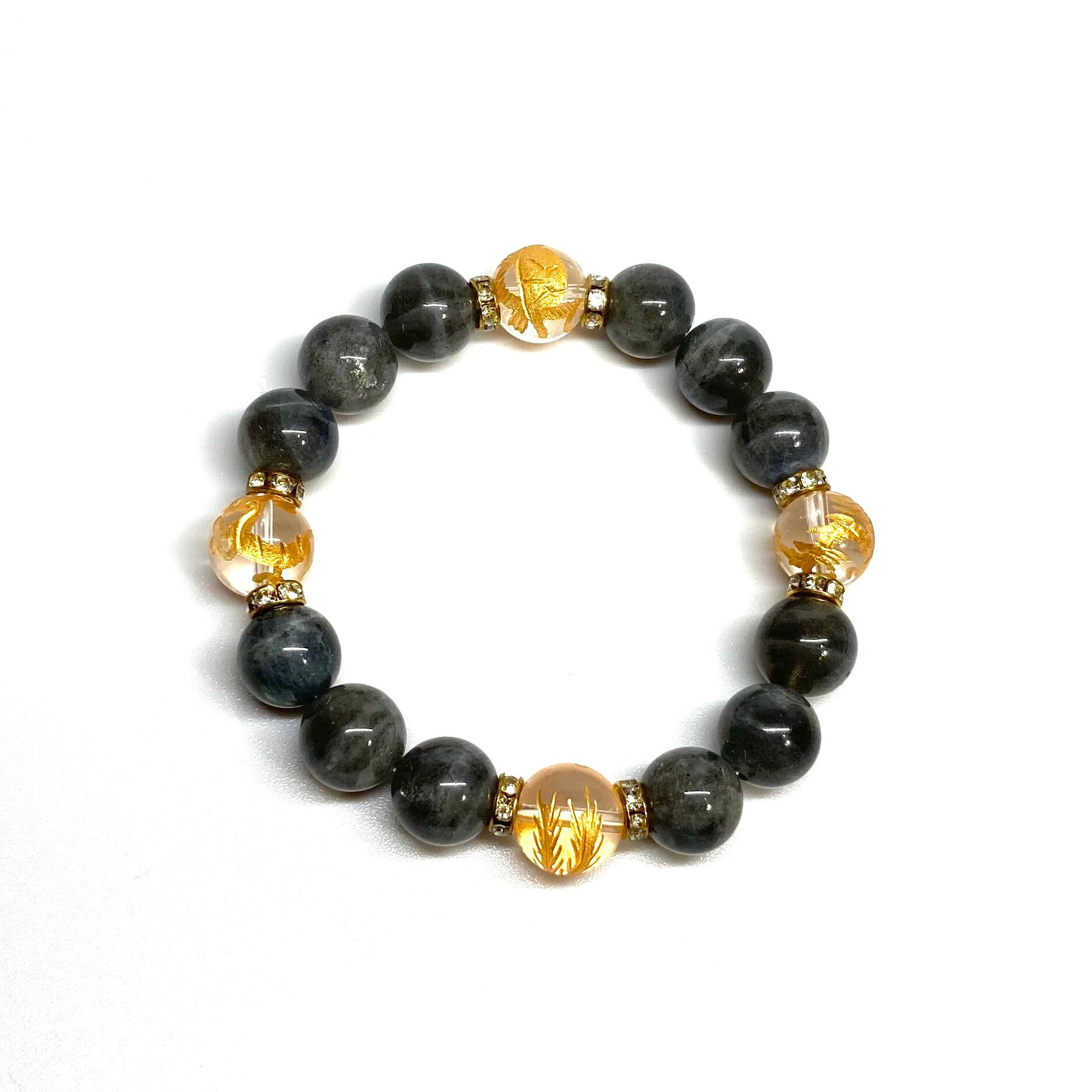 ご覧頂いているブレスレットは、四神獣金彫水晶とラブラドライト を組み合わせたブレスレット。守り神である四神とパワーストーンの組み合わせで運気の流れを引き寄せる強運ブレスレットです。シンプルなデザインで男女問わず、年齢問わずご使用頂けるデザインなっております。シンプルなデザインは日常のアクセントとして、仕事やビジネスカジュアル、パーティーや特別なイベントなど様々なシーン活用できます。また、ちょっと贈り物にも最適なブレスレットになっております。四神獣を身につけて厄災から身を守り、多くの運気を呼び込まれてください。