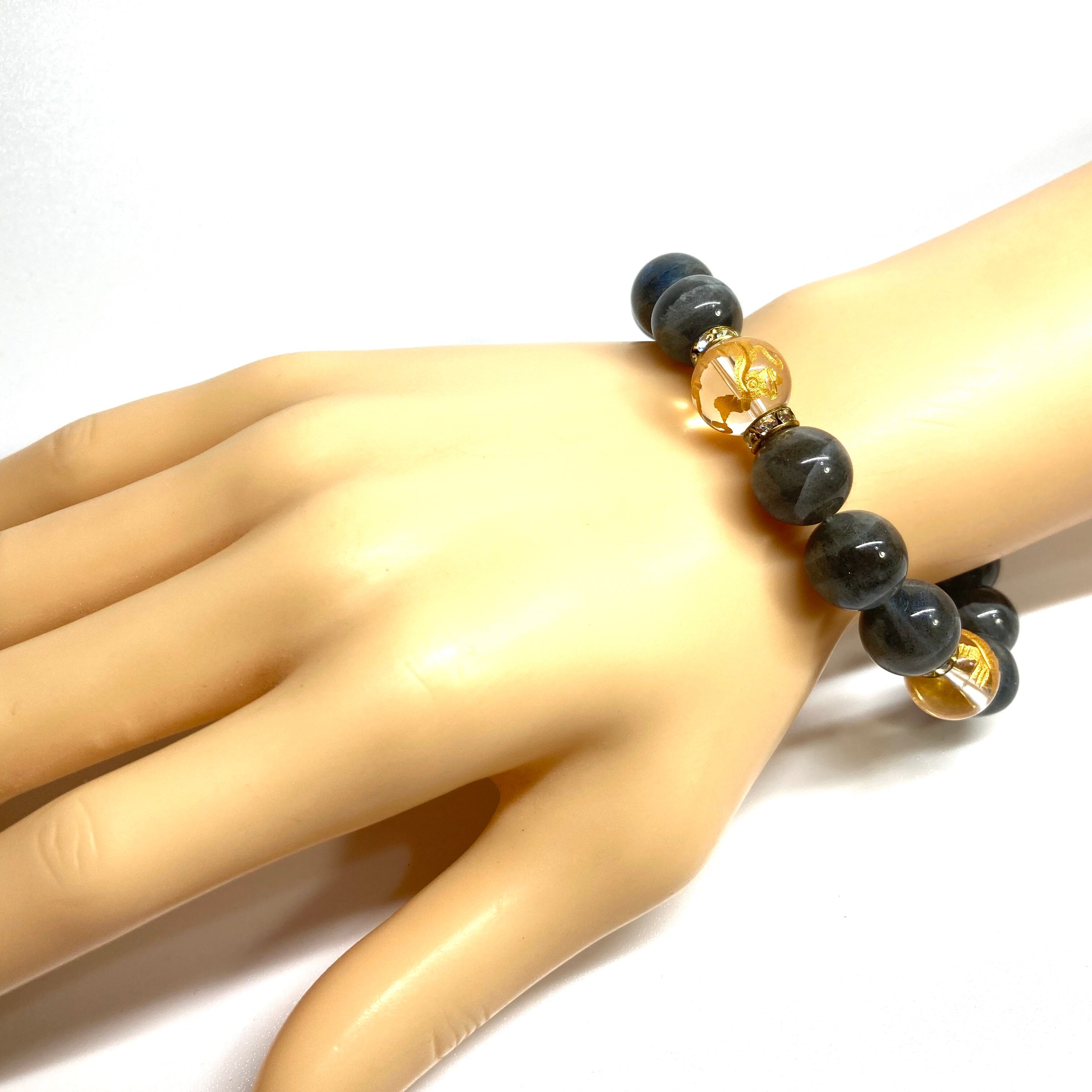 12mm 四神獣金彫水晶×ラブラドライト パワーストーン ブレスレット天然石 運気上昇 金運 ギャンブル運 お守り (ゴールド)メンズ・レディース 男性・女性 数珠ブレス 開運 ☆