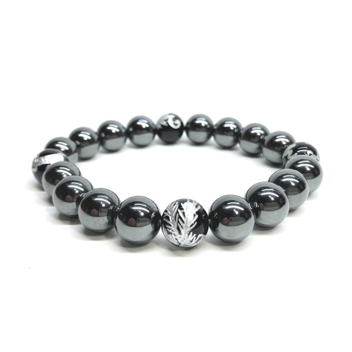 10mm 四神獣銀彫オニキス×ヘマタイト パワーストーン ブレスレット天然石 運気上昇 開運 金運 恋愛運 お守り 青龍 白虎 玄武 朱雀 ☆