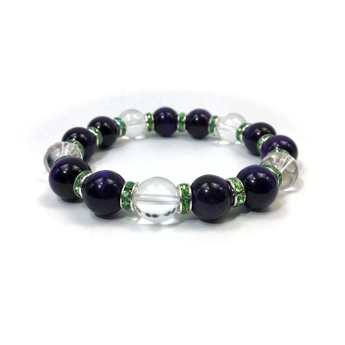 パープルタイガーアイ&水晶 パワーストーン ブレスレット 12mm (グリーン)メンズ・レディース 男性・女性 数珠ブレス 開運 ☆