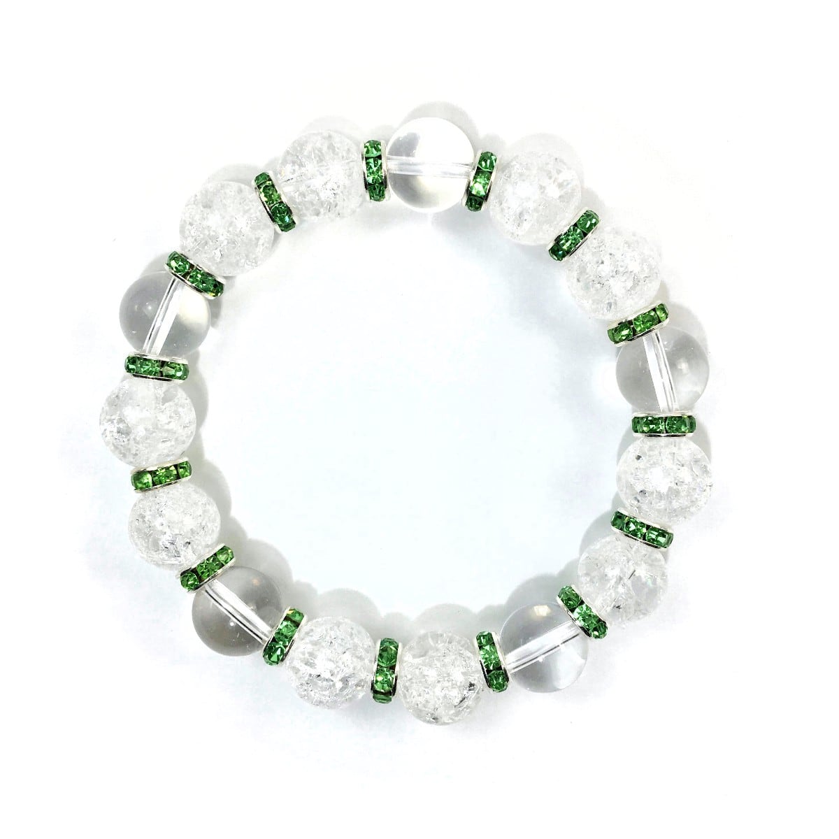 クラック水晶&水晶 パワーストーン ブレスレット 天然石 12mm (グリーン)メンズ・レディース 男性・女性 数珠ブレス 開運 ☆