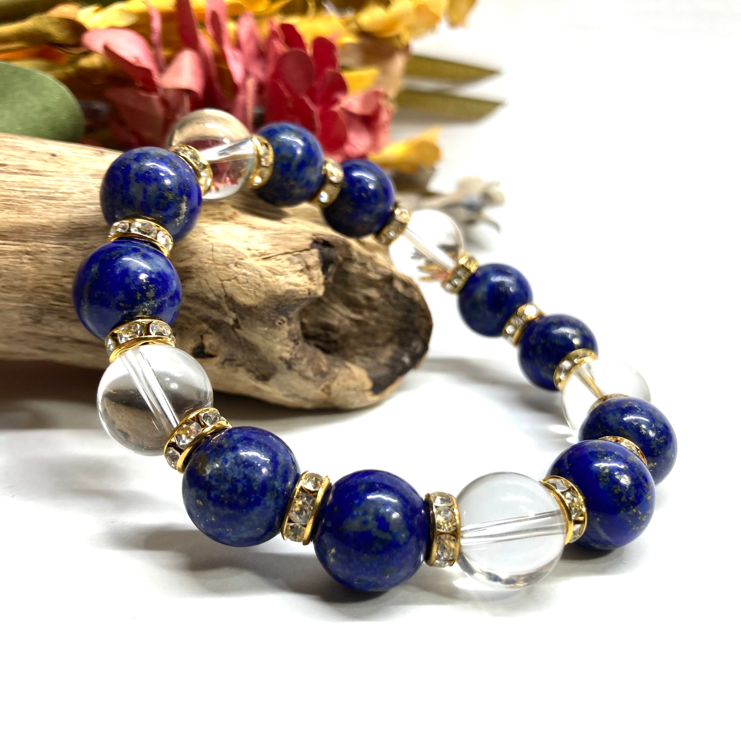 ラピスラズリ&水晶 パワーストーン ブレスレット 12mm (ゴールド)メンズ・レディース 男性・女性 数珠ブレス 開運 ☆