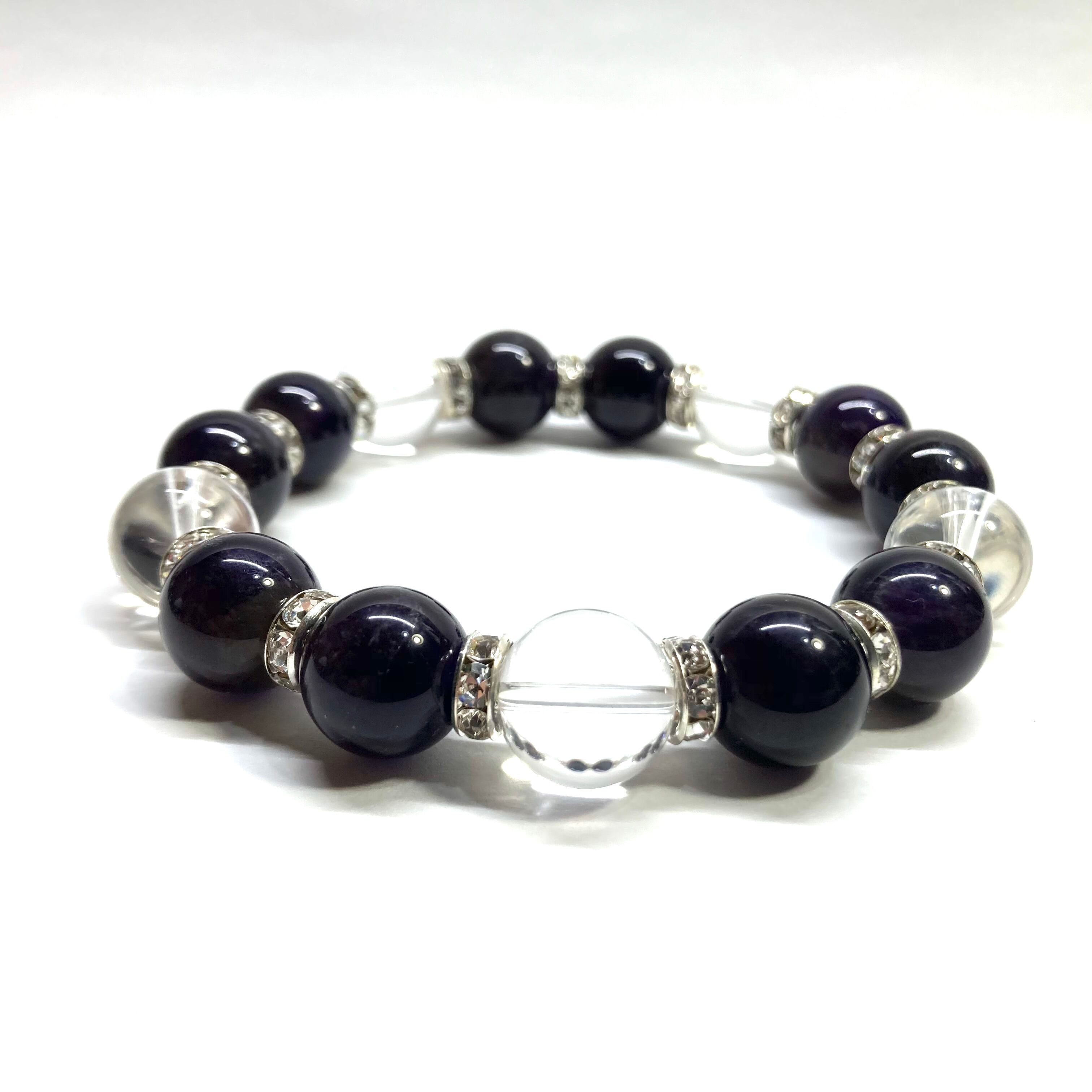アメジスト&水晶 パワーストーン ブレスレット 天然石 12mm (シルバー)メンズ・レディース 男性・女性 数珠ブレス 開運 ☆