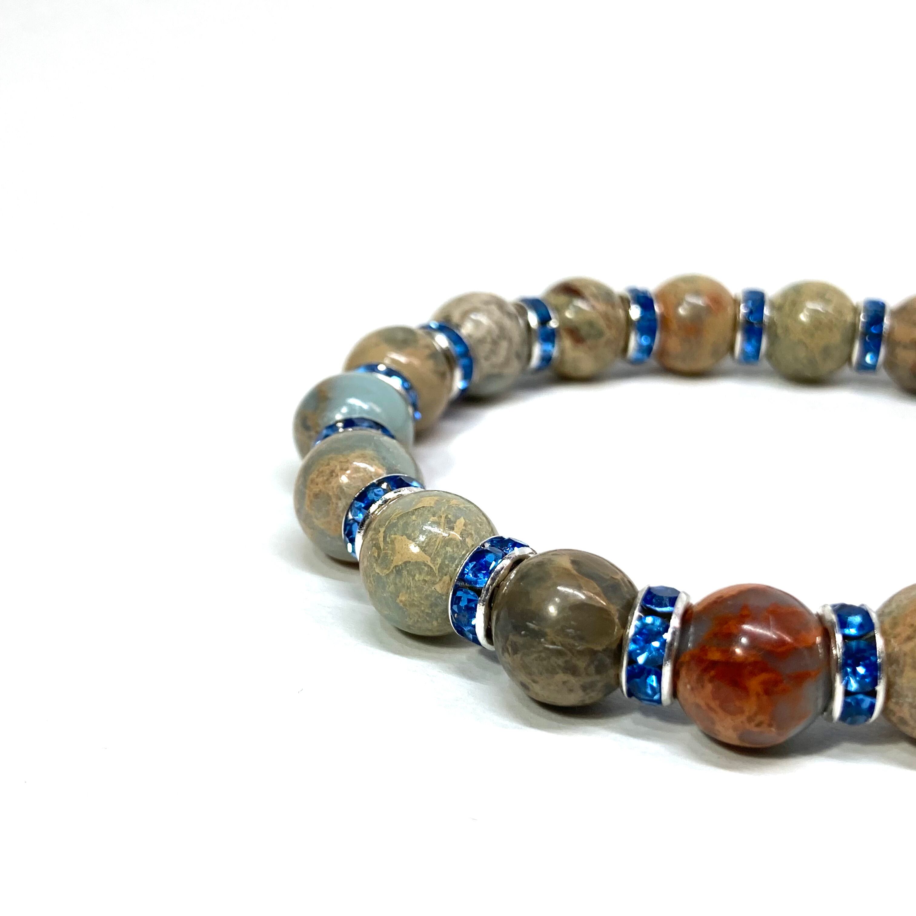 インプレッションストーン パワーストーン ブレスレット 10mm (ブルー)メンズ・レディース 男性・女性 数珠ブレス 開運 ☆