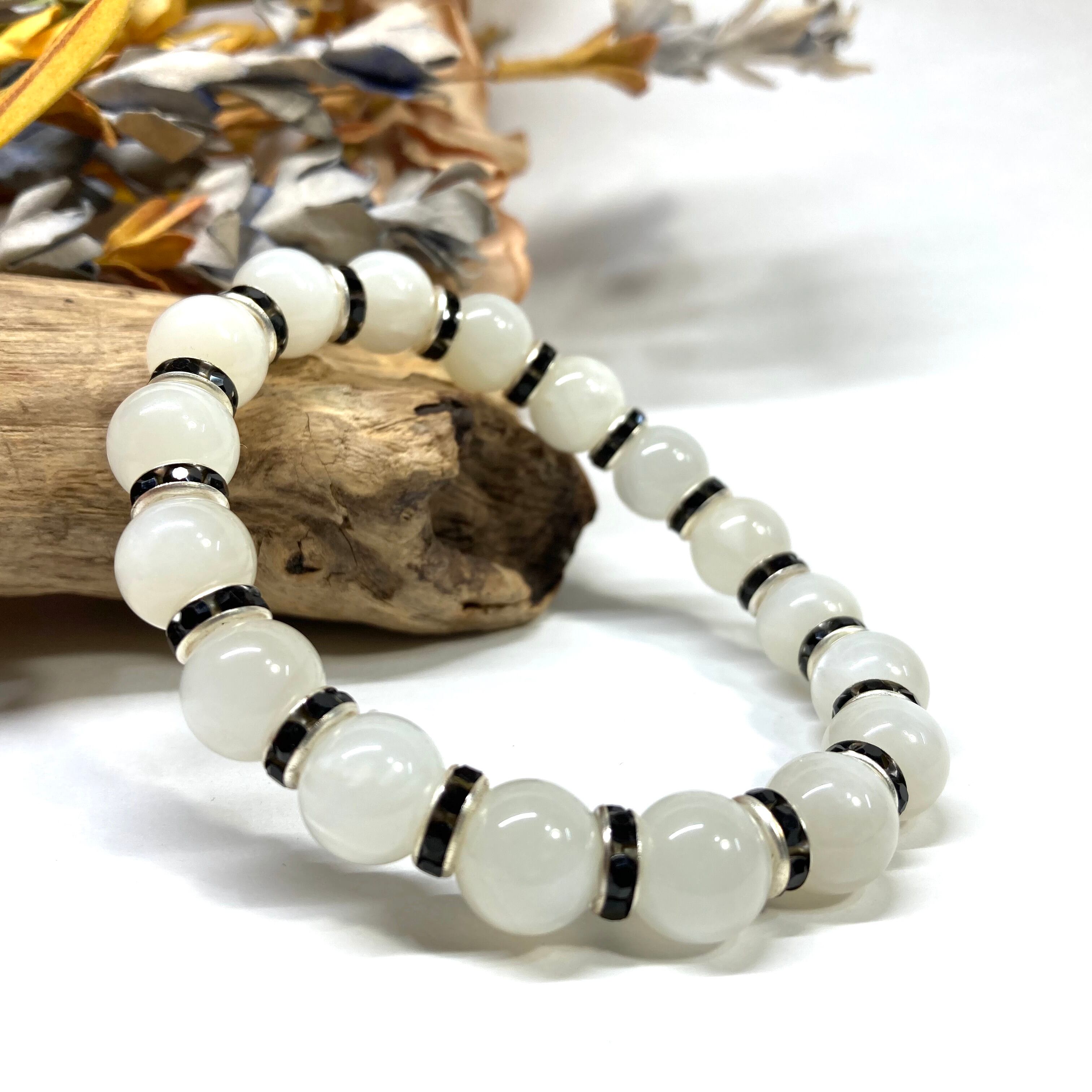 ムーンストーン パワーストーン ブレスレット 10mm 天然石 10mm (ブラック)メンズ・レディース 男性・女性 数珠ブレス 開運 ☆