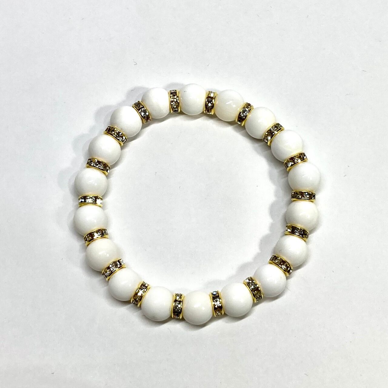 ホワイトオニキス パワーストーン ブレスレット 10mm (ゴールド)メンズ・レディース 男性・女性 数珠ブレス 開運 ☆
