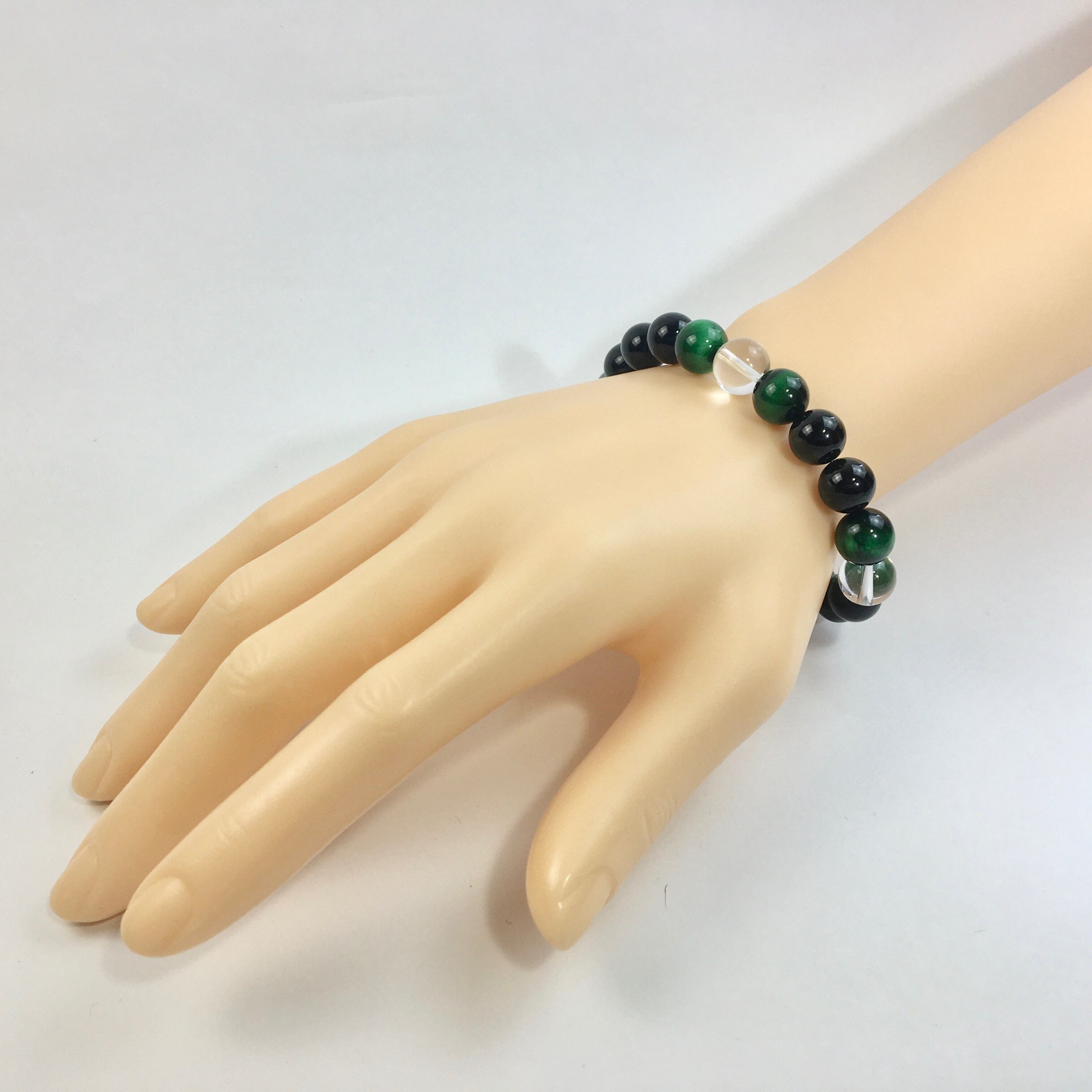 水晶×グリーンタイガーアイ×オニキス パワーストーン ブレスレット 10mm 天然石 メンズ・レディース 男性・女性 数珠ブレス 開運 ☆