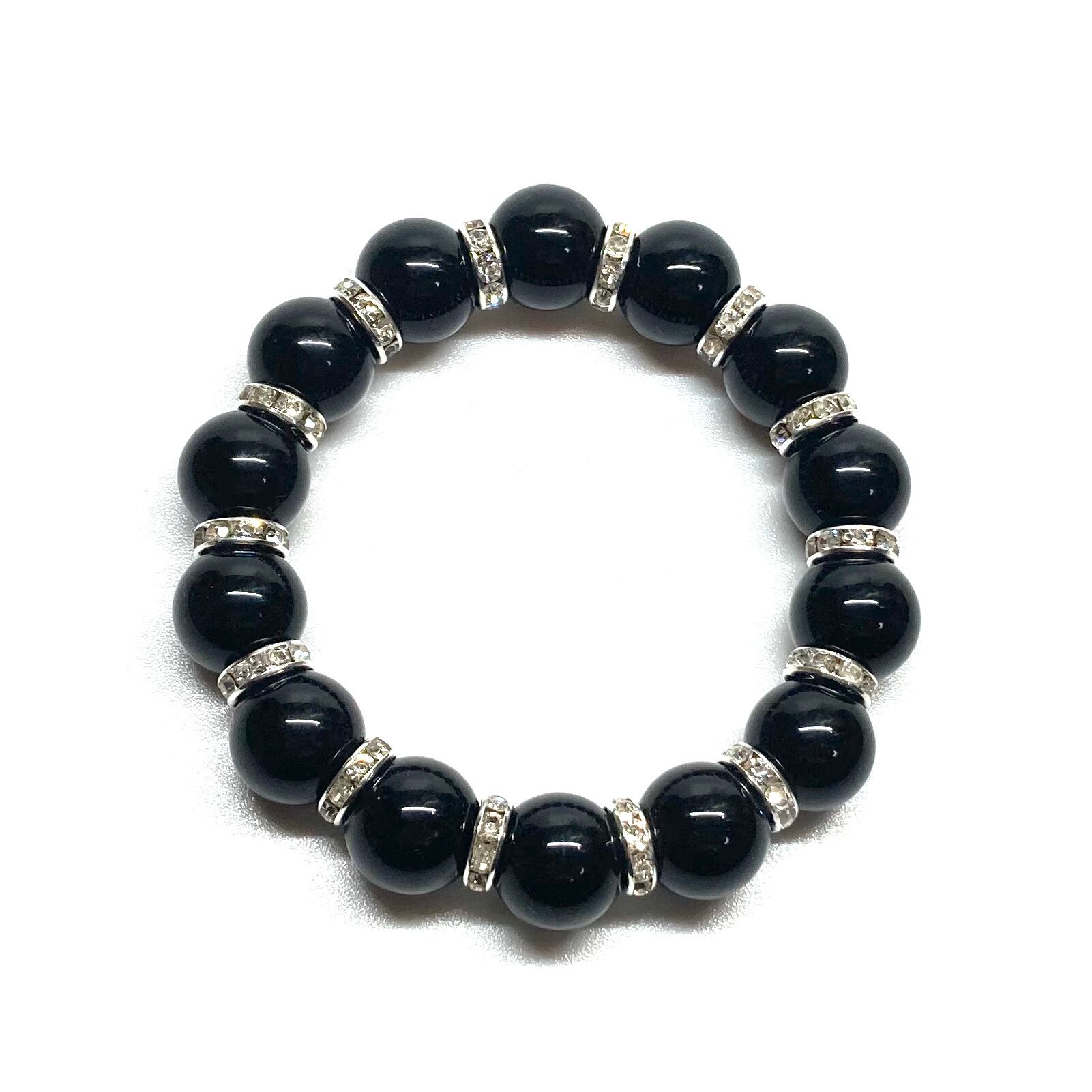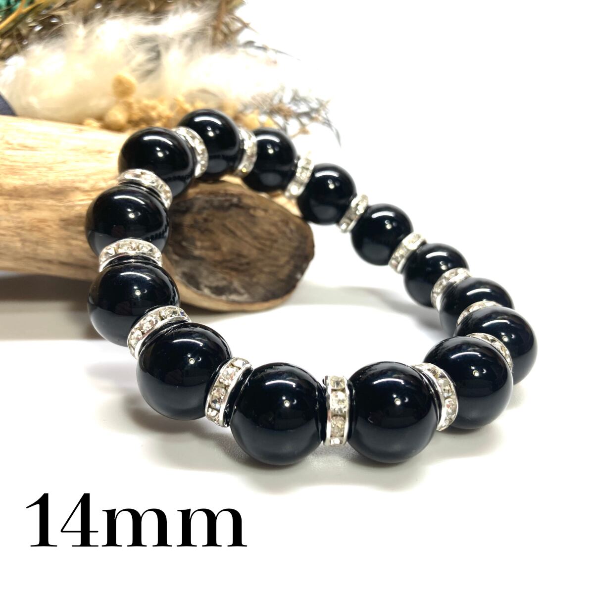 オニキス パワーストーン ブレスレット 天然石ブレス (シルバー) 14mm メンズ・レディース 男性・女性 数珠ブレス 開運 ☆