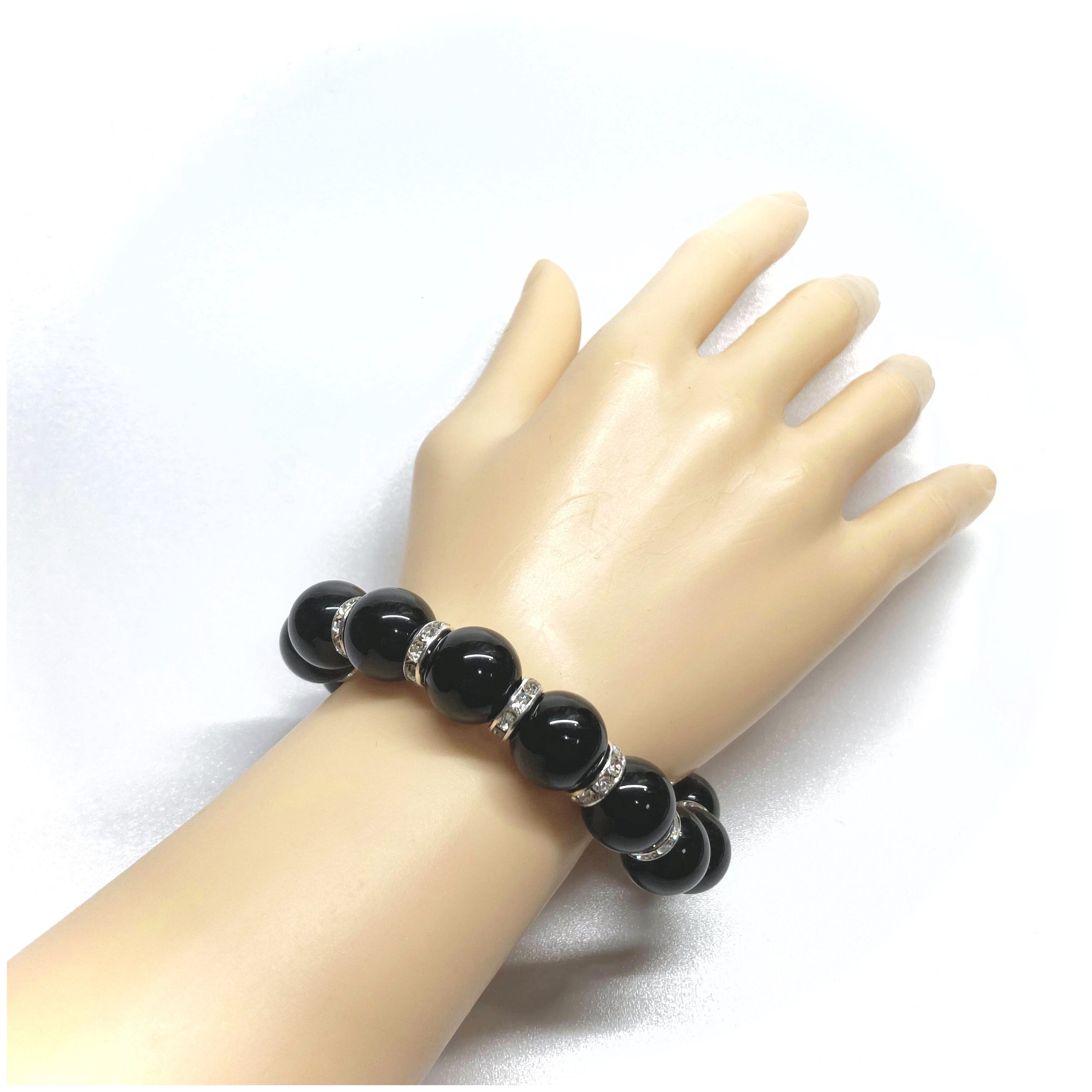 こちらは、14mm玉のオニキスを使用した天然石ブレスレットです。シンプルなデザインですのでどんなコーディネートとも合わせ易いブレスレットです。石との間にはロンデルを挟み高級感を演出しています。石大きさはインパクトを与えてくれる大きさの14mm玉を使用しています。内周約17cmです。数に限りがございますので気になる方はお早めにどうぞ。