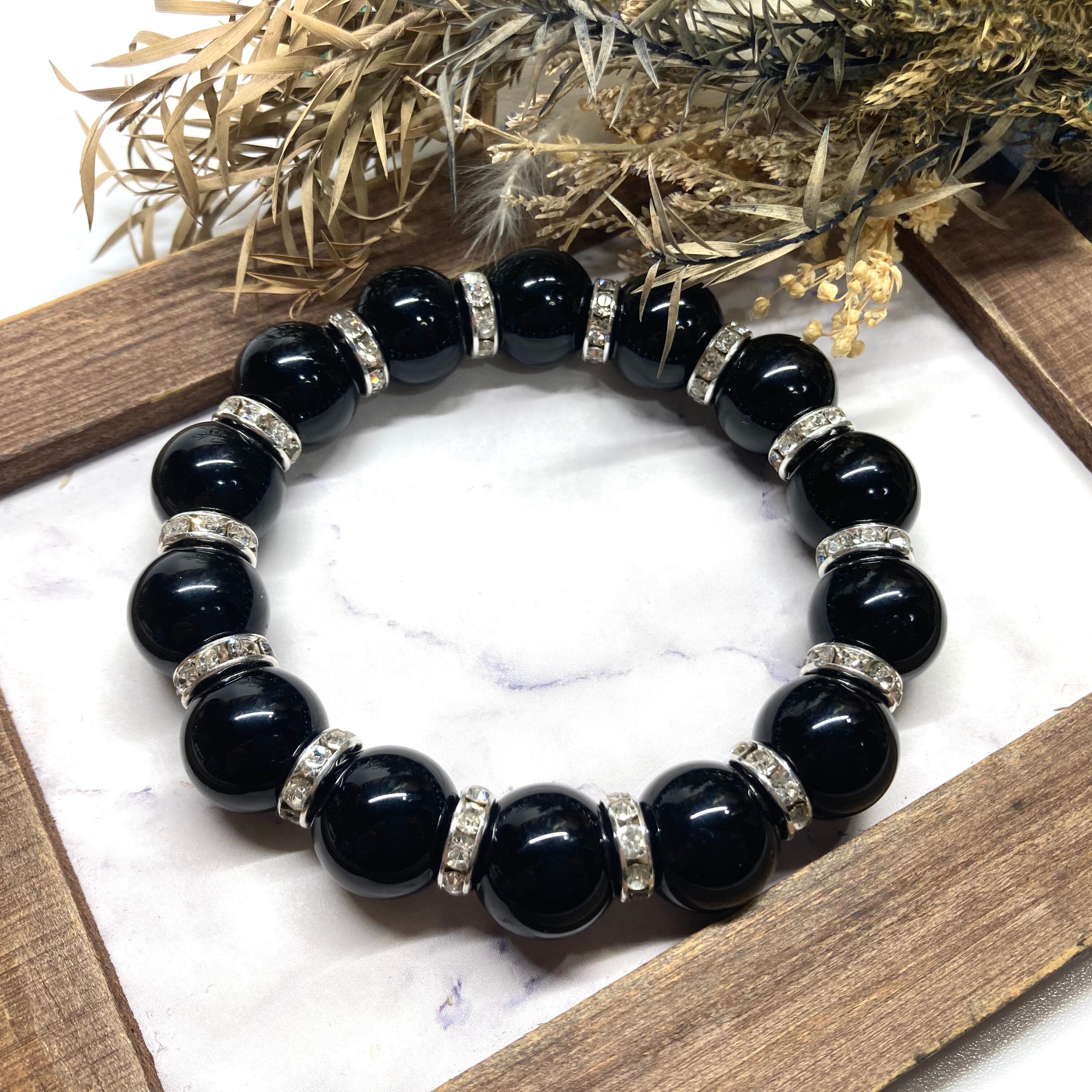 モリオン パワーストーン ブレスレット 天然石ブレス (シルバー) 14mm メンズ・レディース 男性・女性 数珠ブレス 開運 ☆