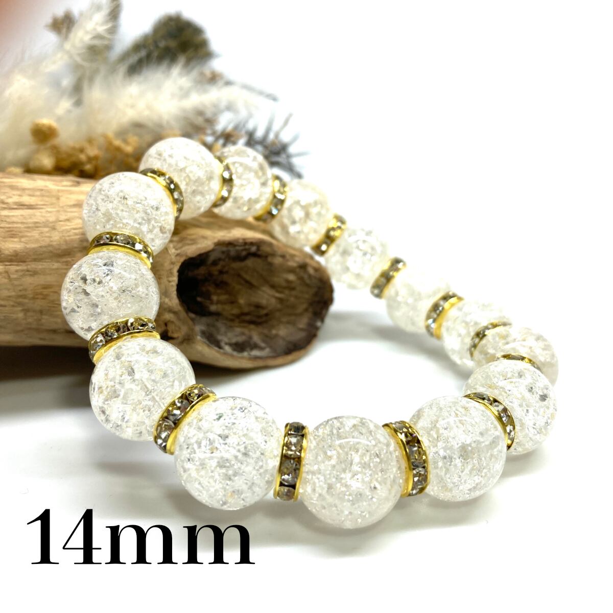 クラック水晶 パワーストーン ブレスレット 天然石ブレス (ゴールド) 14mm メンズ・レディース 男性・女性 数珠ブレス 開運 ☆