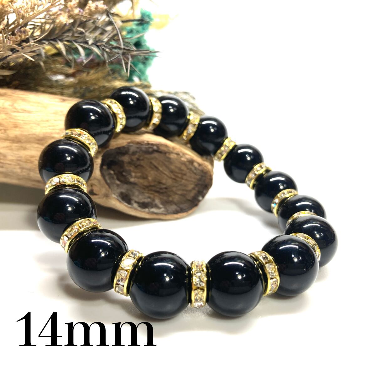 モリオン パワーストーン ブレスレット 天然石ブレス (ゴールド) 14mm メンズ・レディース 男性・女性 数珠ブレス 開運 ☆
