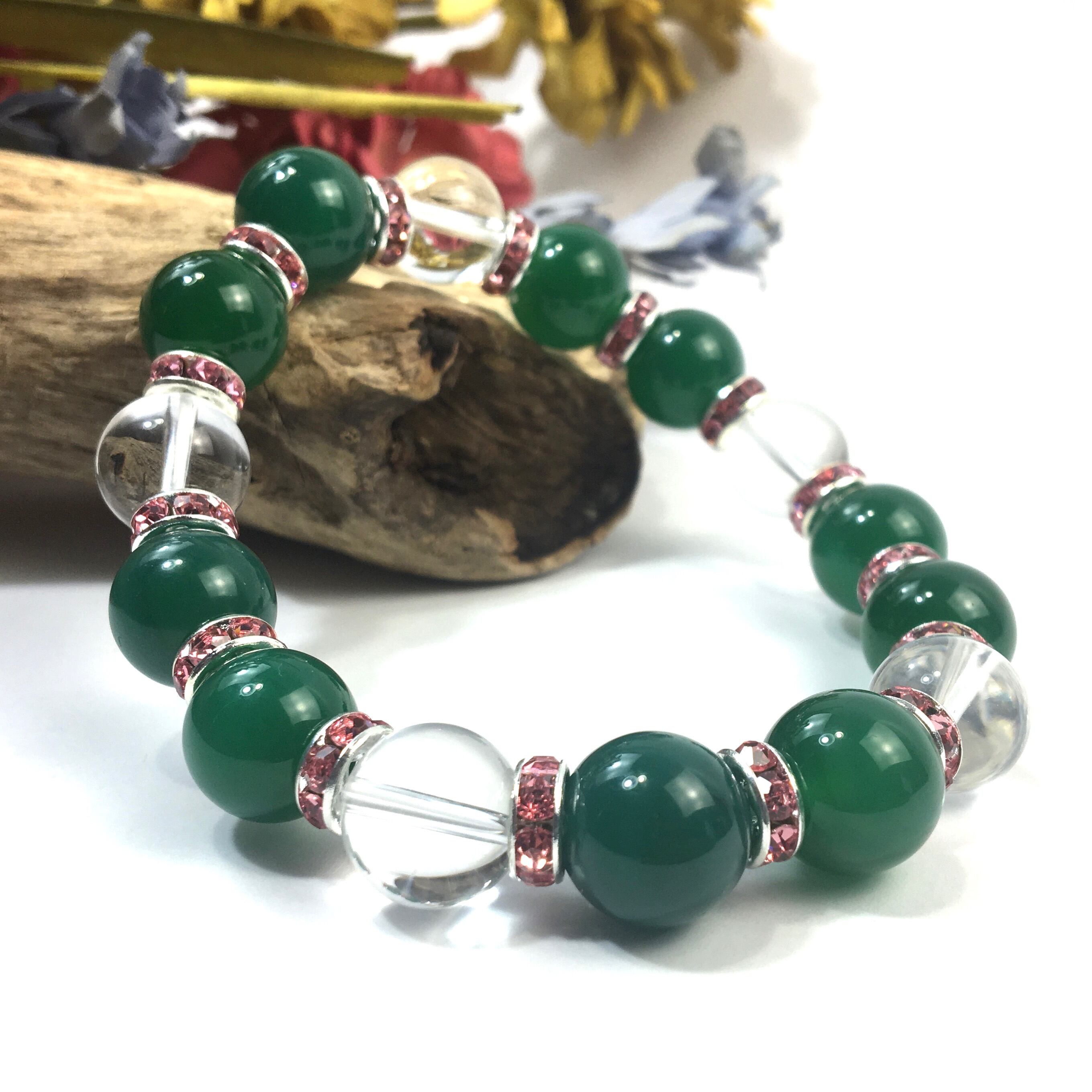 緑瑪瑙&水晶 パワーストーン ブレスレット 天然石 12mm (ピンク)メンズ・レディース 男性・女性 数珠ブレス 開運 ☆