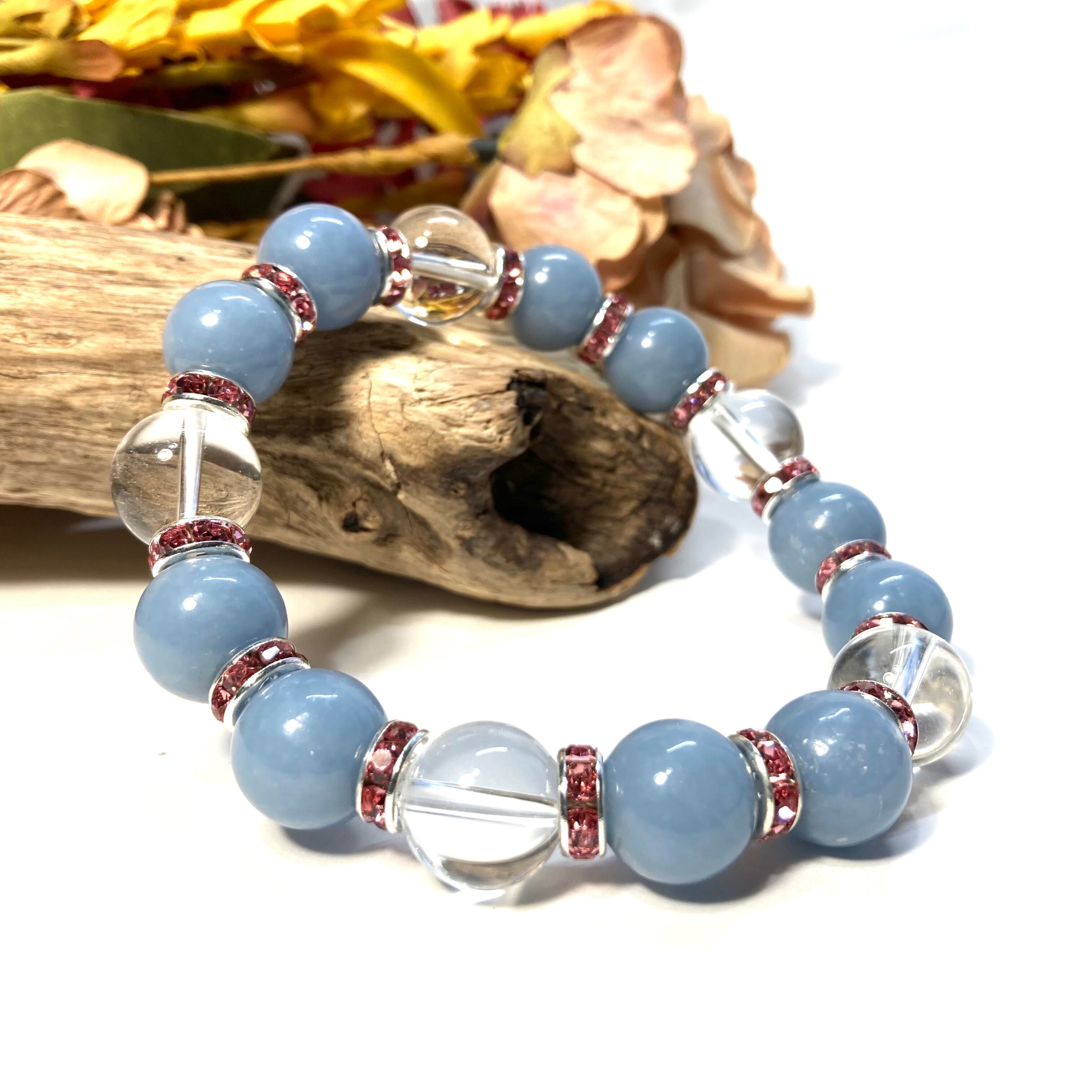 エンジェライト&水晶 パワーストーン ブレスレット 天然石 12mm (ピンク)メンズ・レディース 男性・女性 数珠ブレス 開運 ☆
