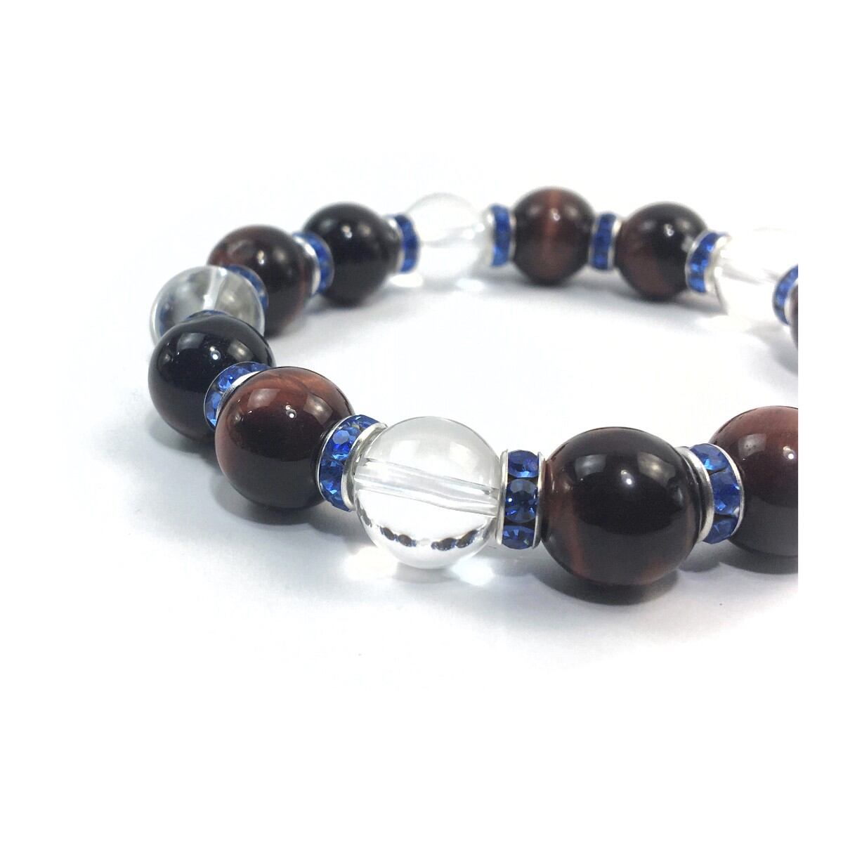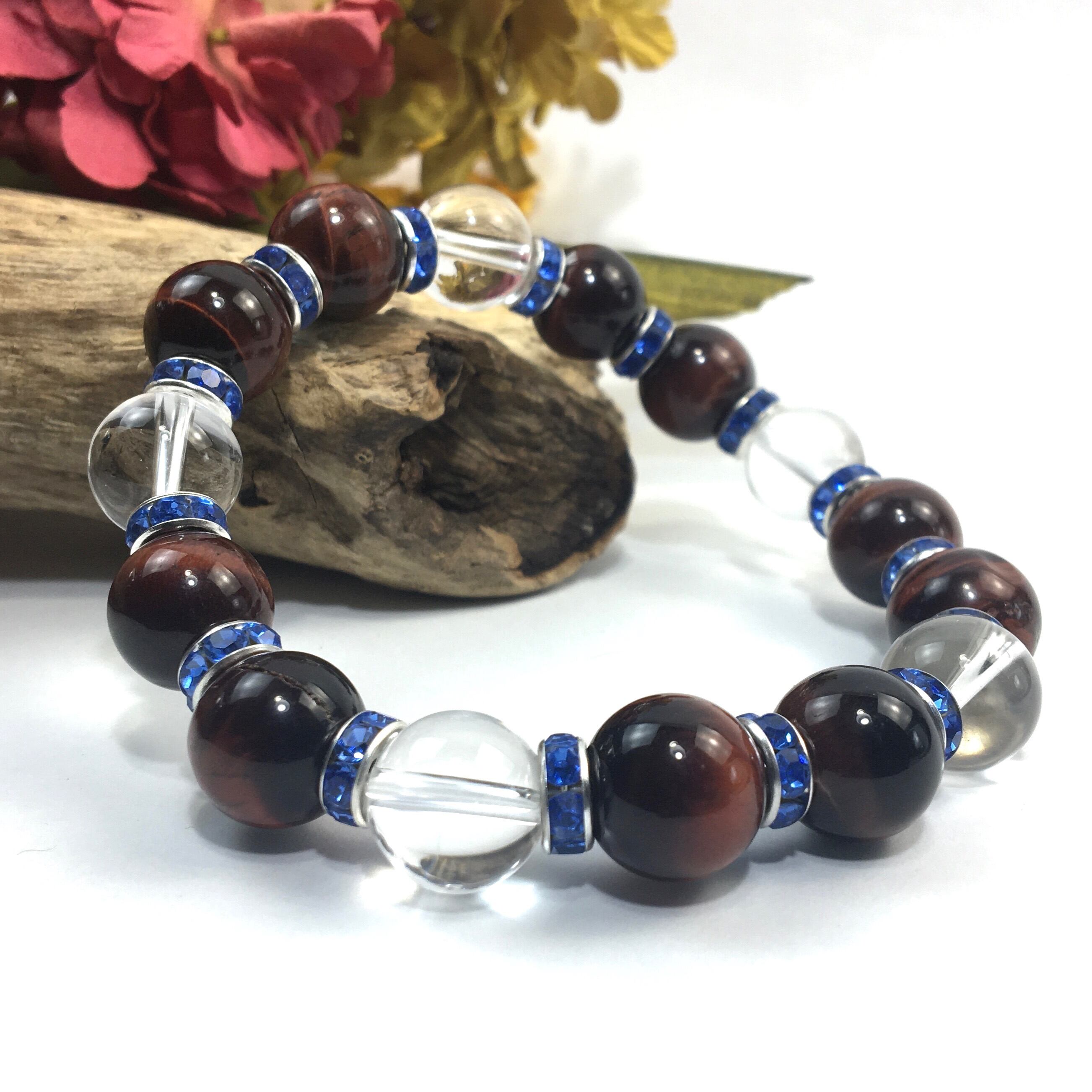 レッドタイガーアイ&水晶 パワーストーン ブレスレット 12mm (ブルー)メンズ・レディース 男性・女性 数珠ブレス 開運 ☆