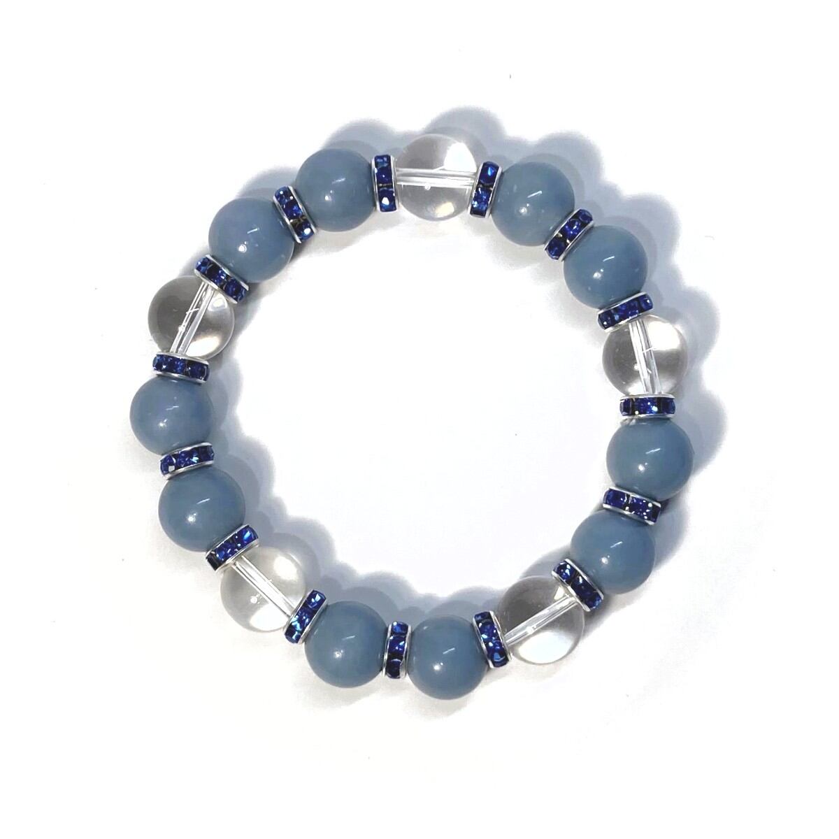 エンジェライト&水晶 パワーストーン ブレスレット 天然石 12mm (ブルー)メンズ・レディース 男性・女性 数珠ブレス 開運 ☆