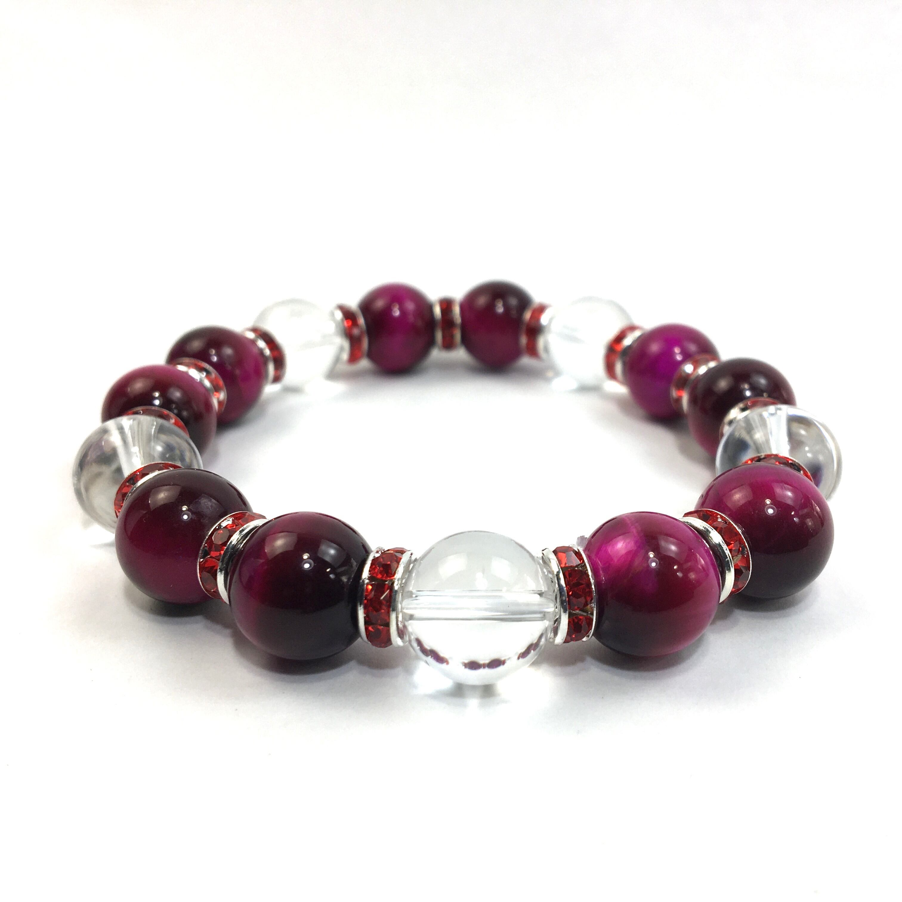 ピンクタイガーアイ&水晶 パワーストーン ブレスレット 12mm (レッド)メンズ・レディース 男性・女性 数珠ブレス 開運 ☆