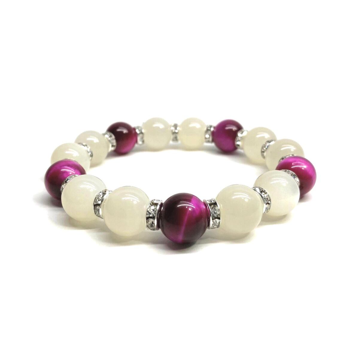 ムーンストーン&ピンクタイガーアイ パワーストーン ブレスレット 天然石ブレス (シルバー) 12mm メンズ レディース 男性 女性 6月誕生石 恋愛運 恋人 夫婦円満 縁結び 数珠 ☆