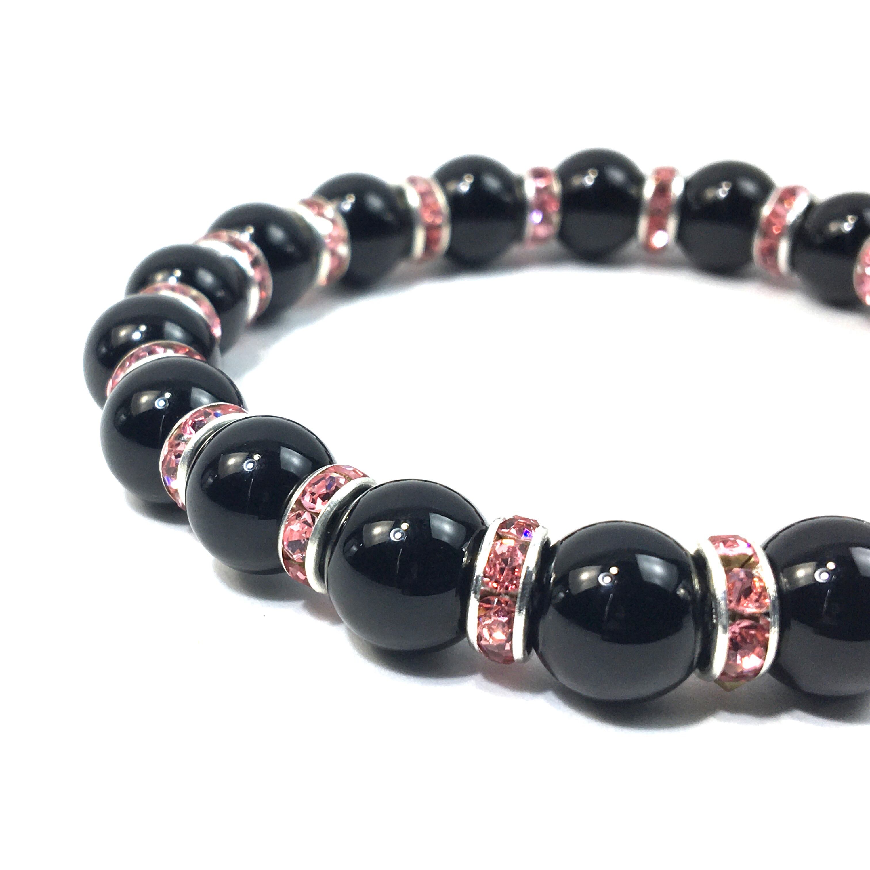 オニキス パワーストーン ブレスレット 天然石 10mm (ピンク)メンズ・レディース 男性・女性 数珠ブレス 開運 ☆