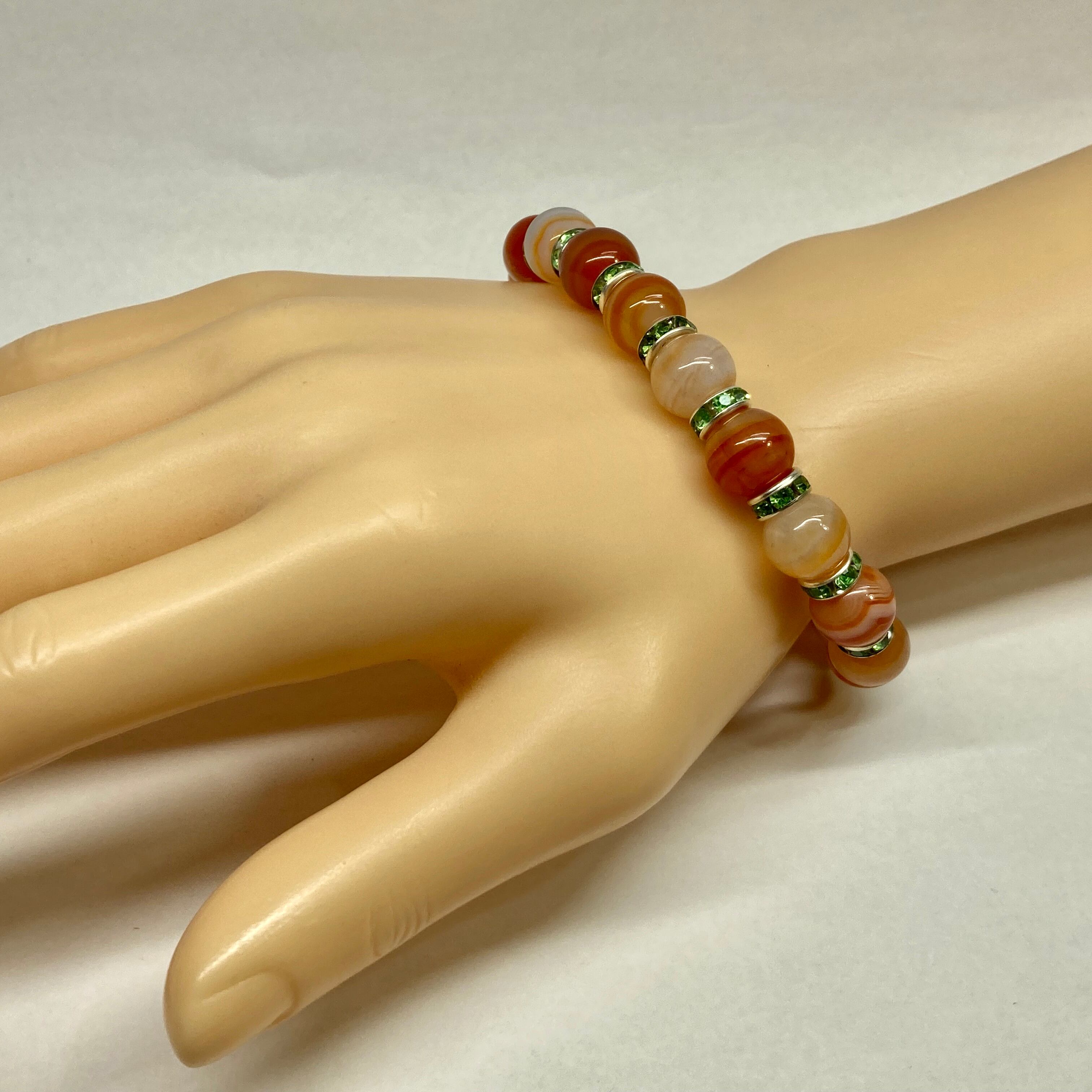 カーネリアン・サードニクス パワーストーン ブレスレット 10mm (グリーン)メンズ・レディース 男性・女性 数珠ブレス 開運 ☆