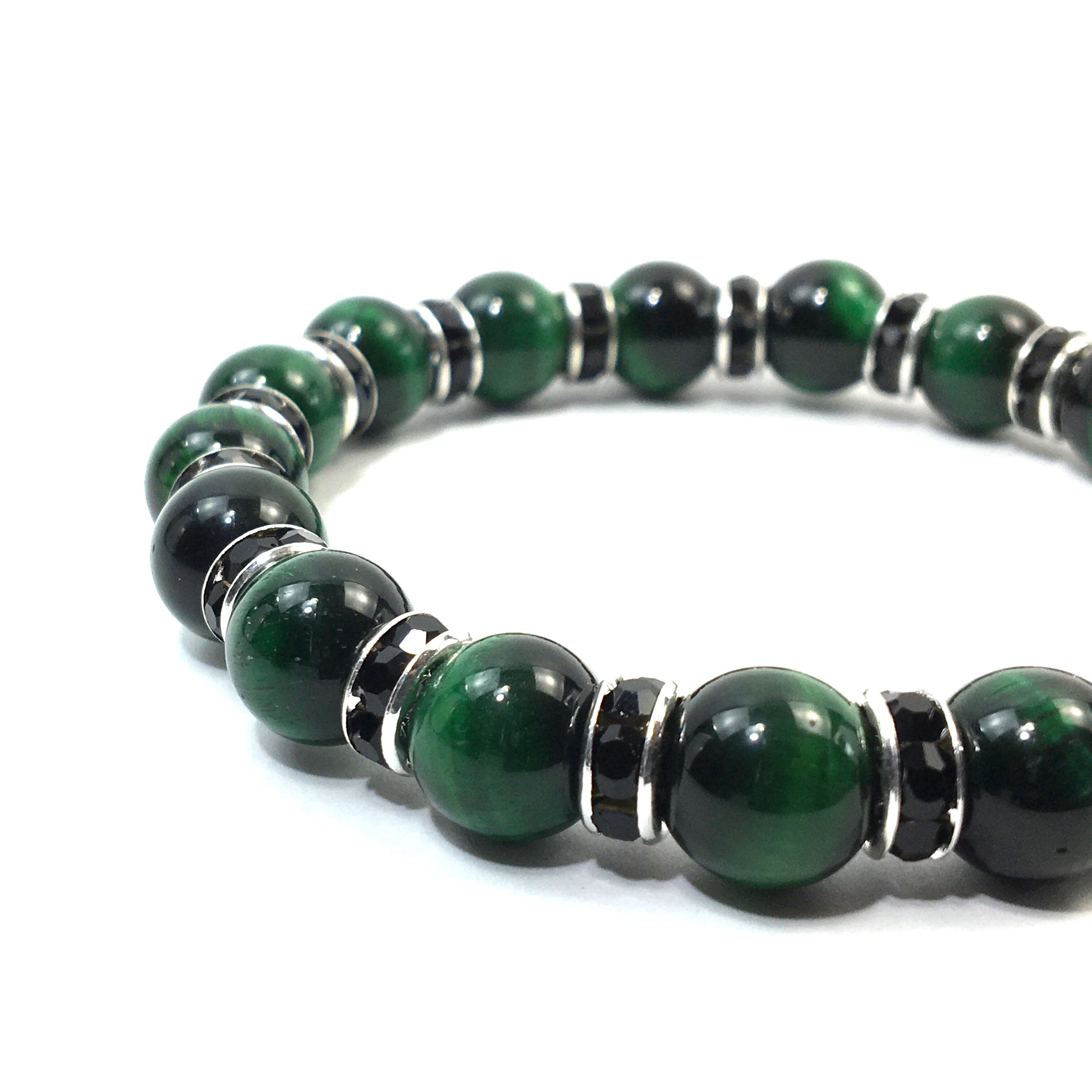 グリーンタイガーアイ パワーストーン ブレスレット 10mm (ブラック)メンズ・レディース 男性・女性 数珠ブレス 開運 ☆