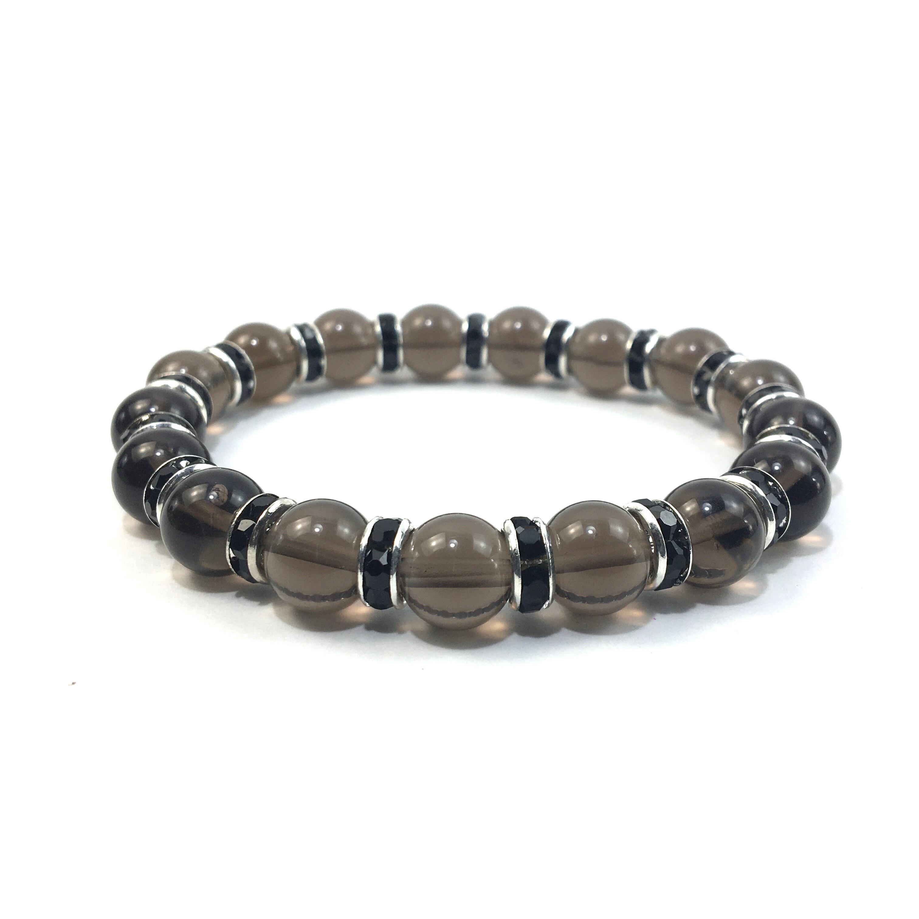 こちらは、スモーキークォーツの10mm玉を使用したパワーストーンブレスレットです。石との間にはロンデルを挟み高級感を演出しております。シンプルなデザインは、シーン問わずどんなコーディネートとも合わせ易いブレスレットです。サイズは種類を選択からお選びください。(内周約14cm?内周約22cmでお選び頂けます)当社の中でも一番人気の実績があるデザインとなっております。気になる方はお早めにどうぞ。