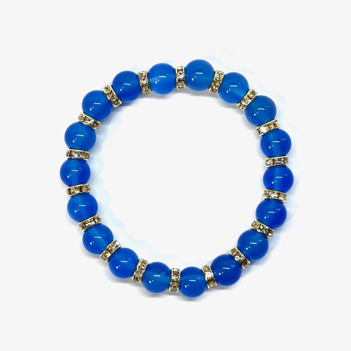 こちらは、青瑪瑙の10mm玉を使用したパワーストーンブレスレットです。石との間にはロンデルを挟み高級感を演出しております。シンプルなデザインは、シーン問わずどんなコーディネートとも合わせ易いブレスレットです。サイズは種類を選択からお選びください。(内周約14cm?内周約22cmでお選び頂けます)当社の中でも一番人気の実績があるデザインとなっております。気になる方はお早めにどうぞ。