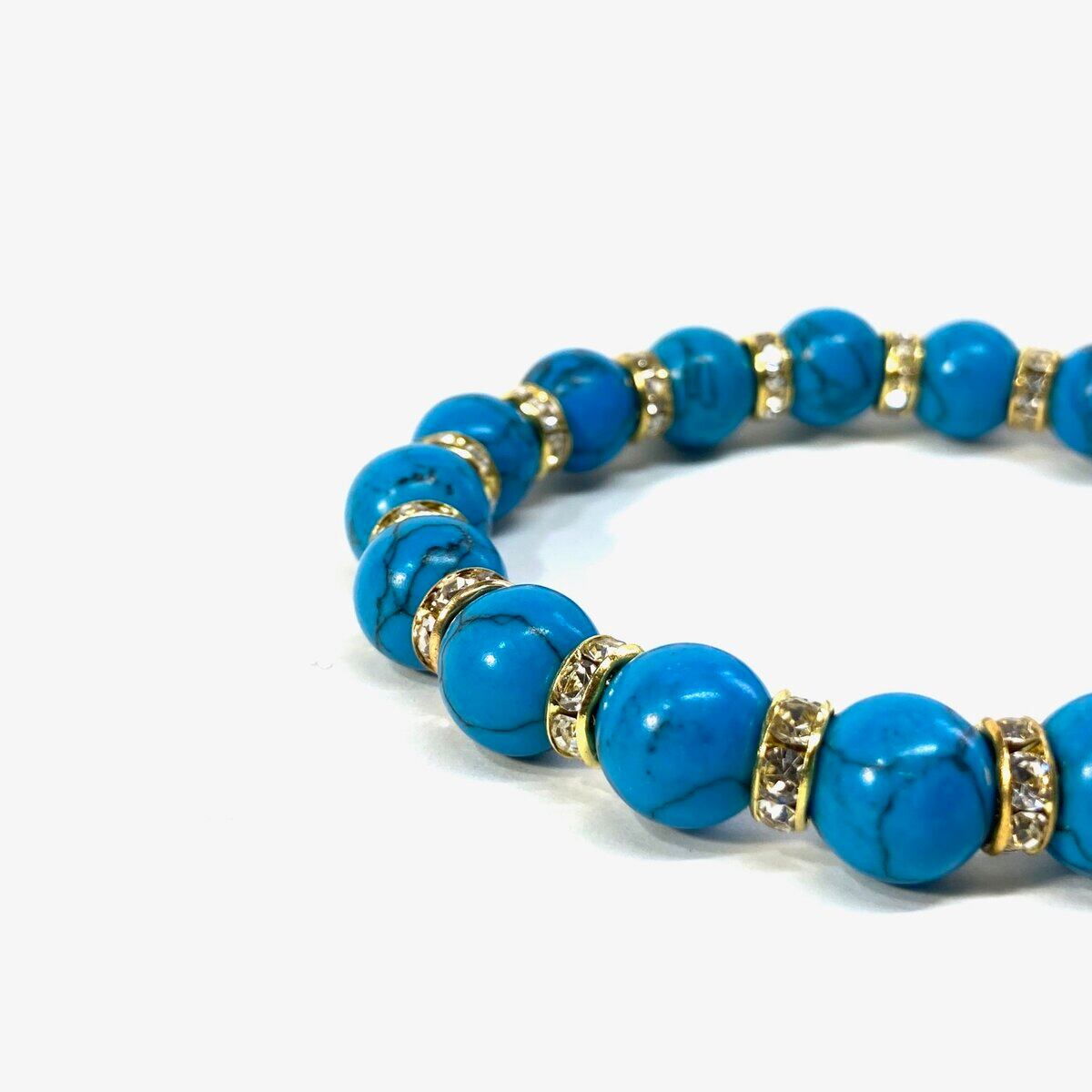 ターコイズ パワーストーン ブレスレット 10mm (ゴールド)メンズ・レディース 男性・女性 数珠ブレス 開運 ☆
