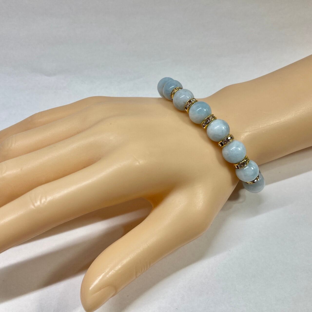 アクアマリン パワーストーン ブレスレット 10mm (ゴールド)メンズ・レディース 男性・女性 数珠ブレス 開運 ☆
