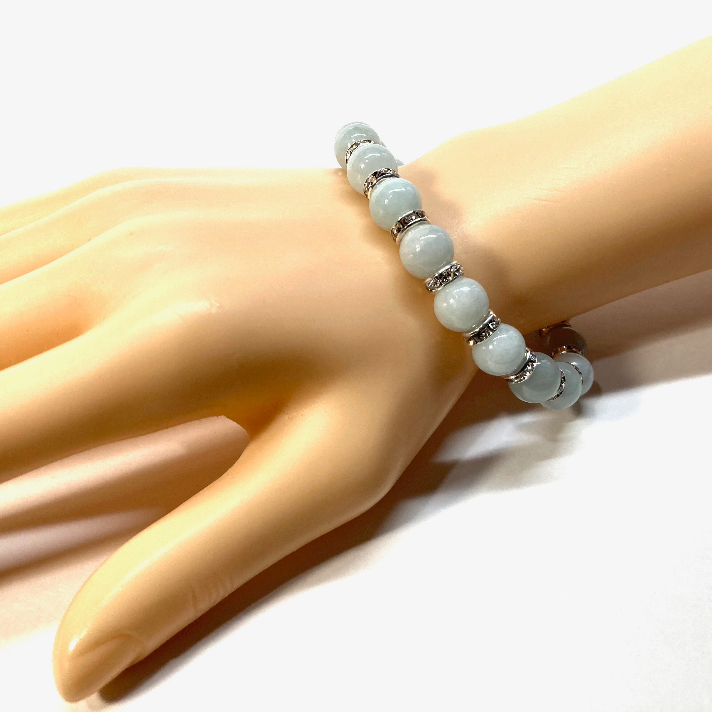 ビルマ翡翠 パワーストーン ブレスレット 天然石 10mm (シルバー)メンズ・レディース 男性・女性 数珠ブレス 開運 ☆