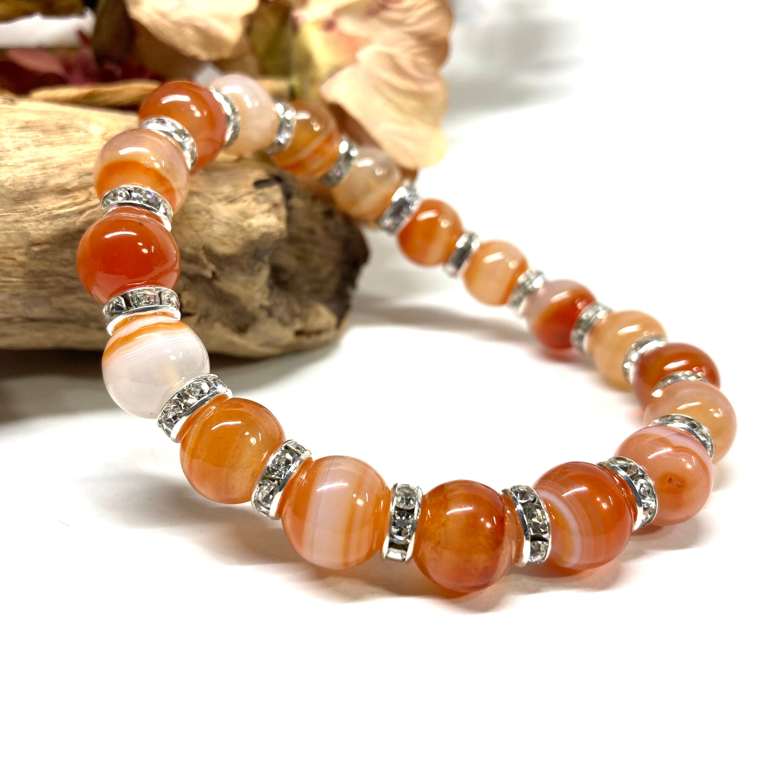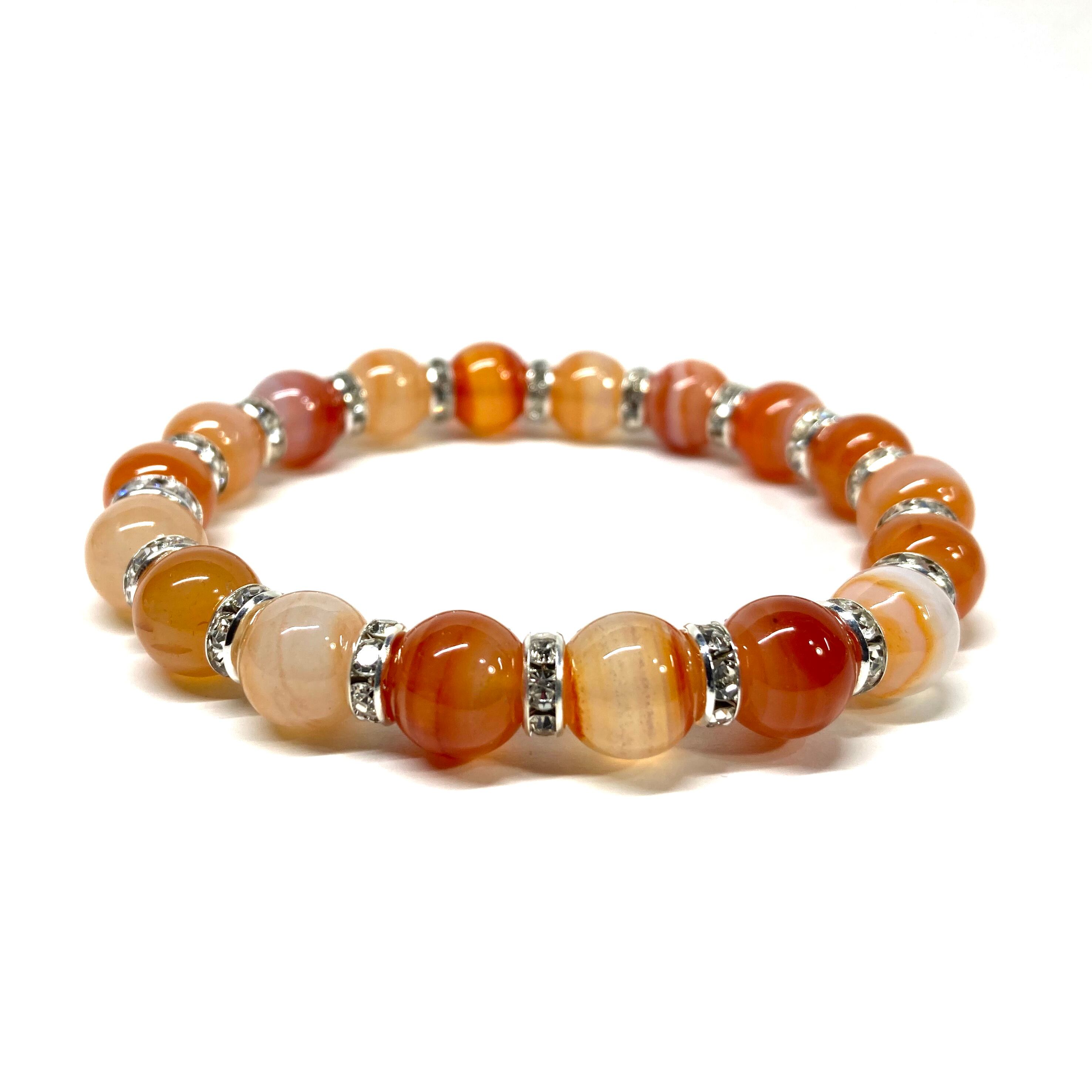 カーネリアン・サードニクス パワーストーン ブレスレット 10mm (シルバー)メンズ・レディース 男性・女性 数珠ブレス 開運 ☆