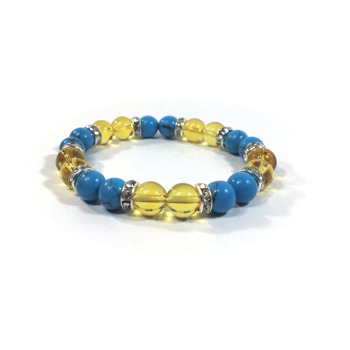 ターコイズ&シトリン パワーストーン ブレスレット 8mm(シルバー)レディース 女性 数珠ブレス 開運 プレゼント ギフト