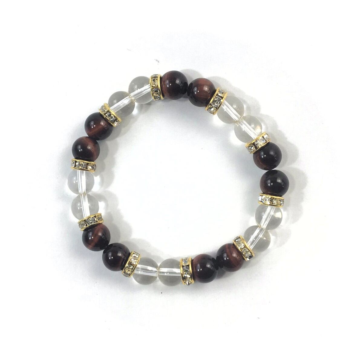 水晶&レッドタイガーアイ パワーストーン ブレスレット 天然石 8mm(ゴールド)レディース 女性 数珠ブレス 開運 プレゼント ギフト