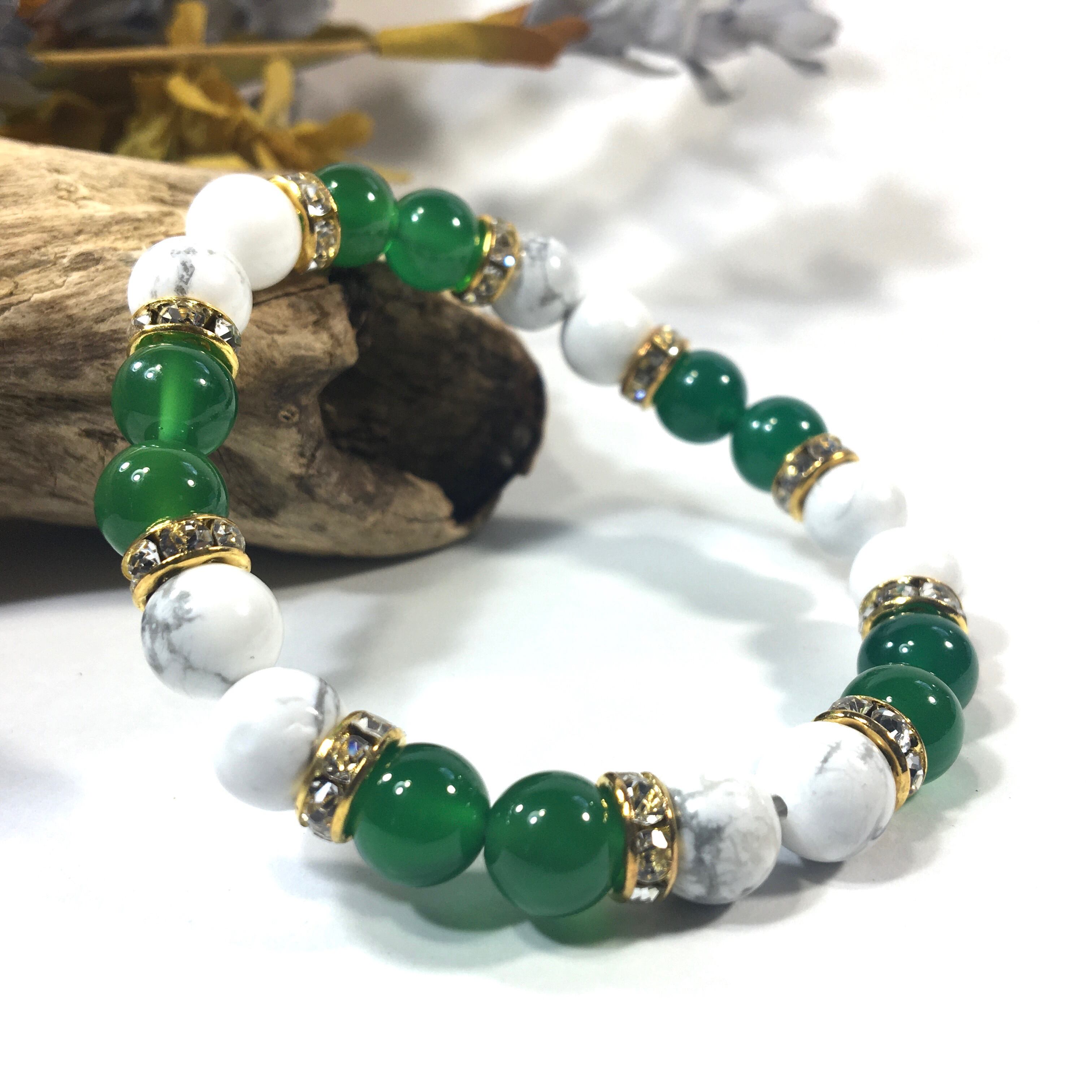ハウライト&緑瑪瑙 パワーストーン ブレスレット 天然石ブレス 8mm(ゴールド)レディース 女性 数珠ブレス 開運 プレゼント ギフト