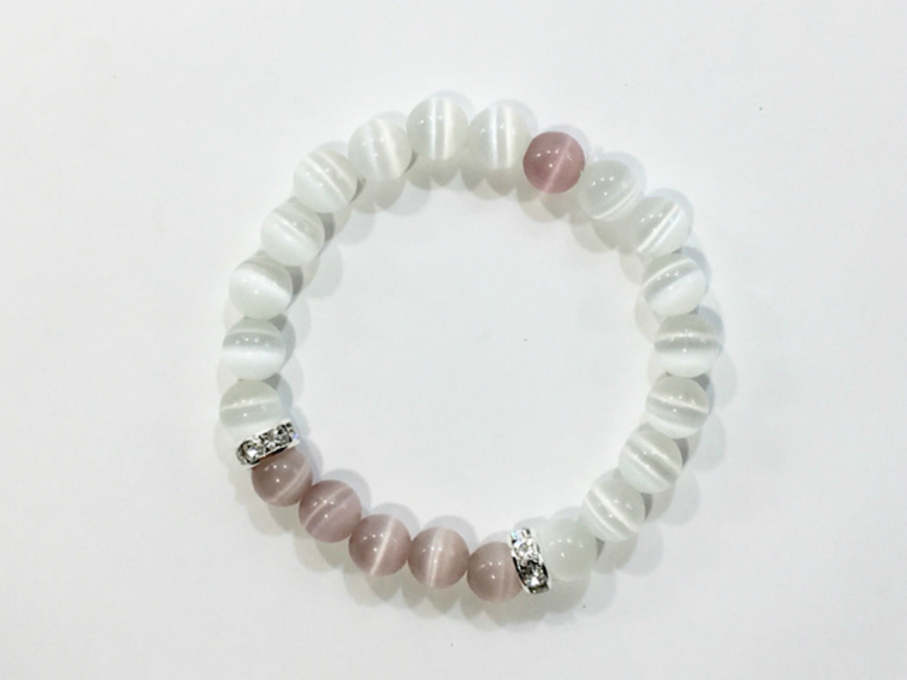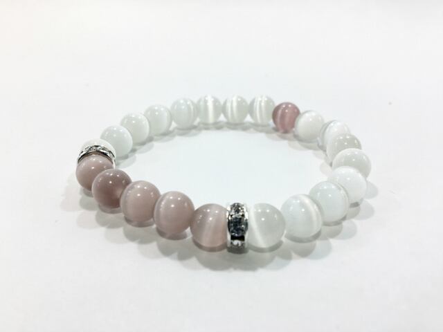 キャッツアイ (ライトパープル)&キャッツアイ(ホワイト) パワーストーン ブレスレット (シルバー)