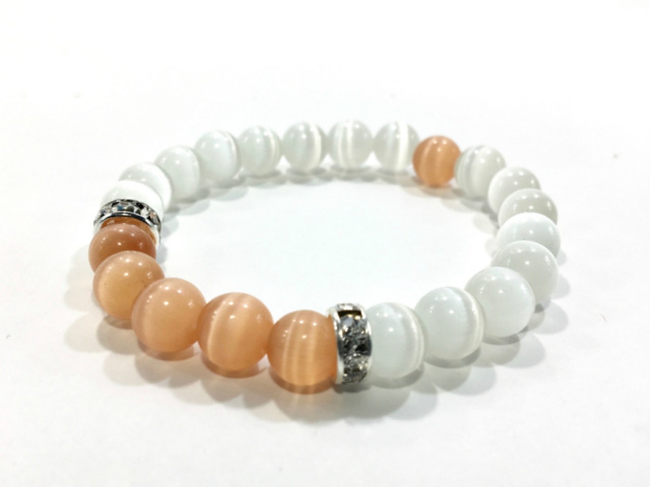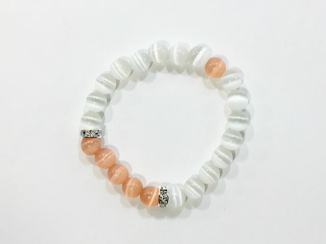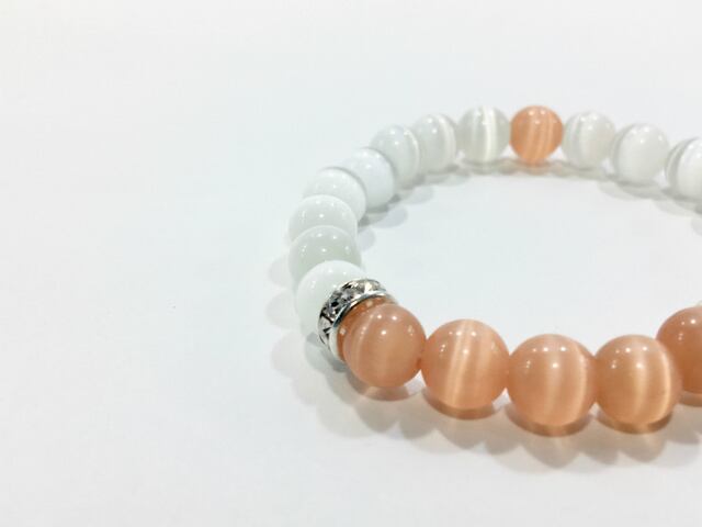 キャッツアイ (オレンジ)&キャッツアイ(ホワイト) パワーストーン ブレスレット (シルバー)