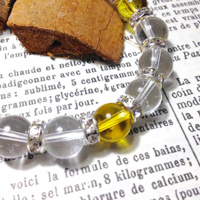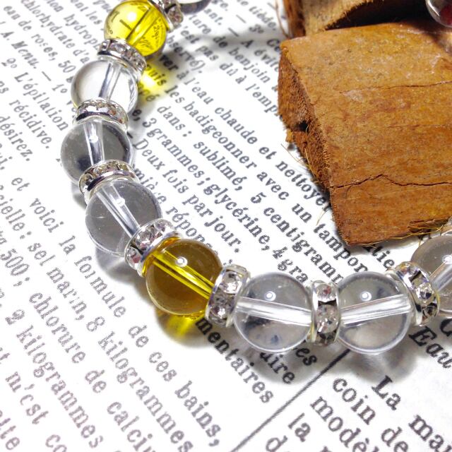 こちらは、10mm玉の水晶と10mm玉のシトリンを組み合わせた天然石ブレスレットです。間にはシルバーのロンデルを挟み高級感あるデザインに仕上がったブレスレットです。石大きさは腕にも馴染みやすいように10mm玉で内周約18cm(伸可能)です。気になる方は是非この機会にどうぞ。