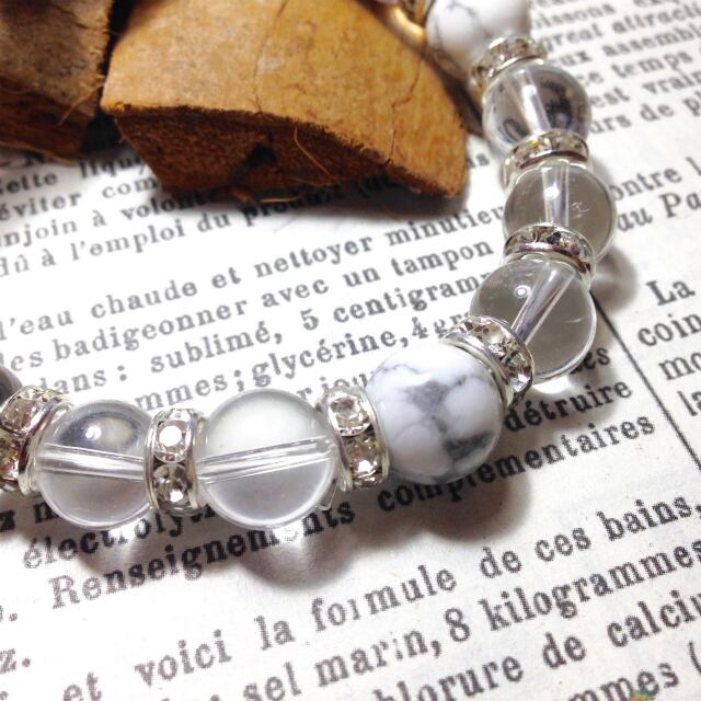 こちらは、10mm玉の水晶と10mm玉のアハウライトを組み合わせた天然石ブレスレットです。間にはシルバーのロンデルを挟み高級感あるデザインに仕上がったブレスレットです。石大きさは腕にも馴染みやすいように10mm玉で内周約18cm(伸可能)です。気になる方は是非この機会にどうぞ。
