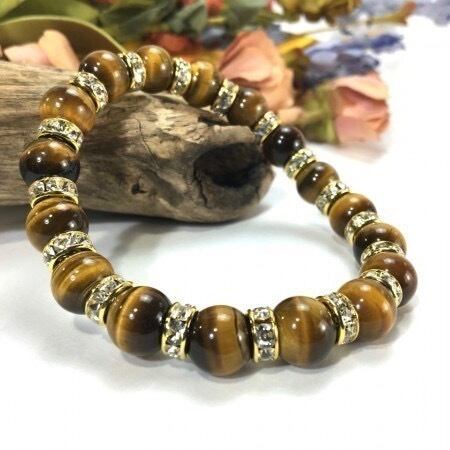 こちらは、タイガーアイを使用した天然石ブレスレットです。石との間にはロンデルを挟み高級感あるデザインに仕上げています。石大きさは腕にも馴染みやすいように10mm玉を使用し、サイズは内周約16cmになります。(サイズ調節は無料です。ご連絡くださいませ。) また、ロンデル(パーツ)をカスタムできるようにしました。交換の際は種類を変えてご購入くださいませ。気になる方は是非この機会にどうぞ。