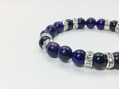 こちらは、8mm玉のパープルタイガーアイ とオニキスを使ったパワーストーンブレスレットです。シンプルなデザインでどんなコーディネートにも合わせやすいデザインに仕上げています。サイズは内周約15cmです。気になる方は是非この機会にどうぞ。