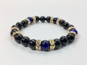 パワーストーン ブレスレット オニキス&ブルータイガーアイ  天然石ブレス (ロンデル:ゴールド) 8mm