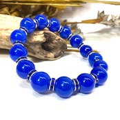 こちらは、12mm玉の青瑪瑙を使用したパワーストーンブレスレットです。間にはロンデルを挟み高級感を演出しております。男女問わずどんなコーディネートとも合わせ易いブレスレットです。サイズは内周約18cmです。数に限りがございますので気になる方はお早めにどうぞ。