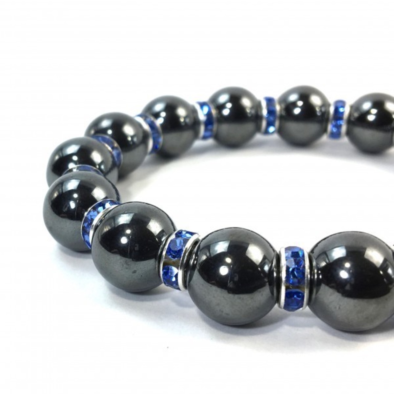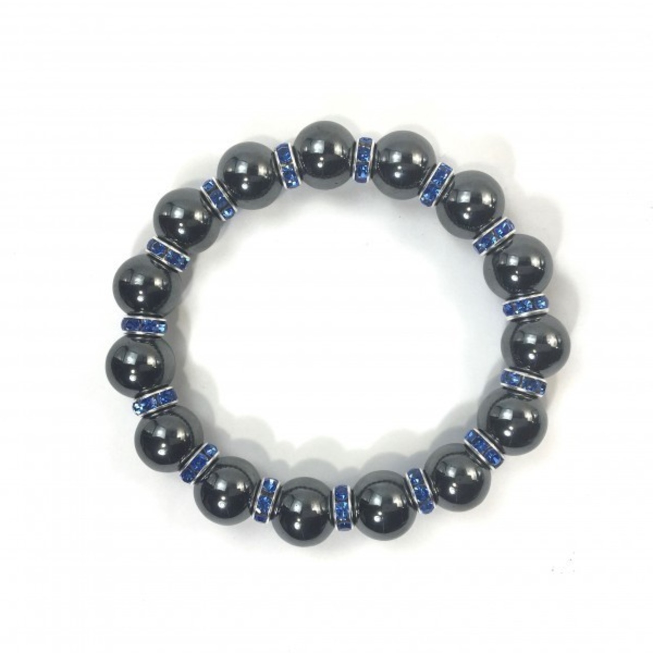 こちらは、12mm玉のヘマタイトを使用した天然石ブレスレットです。石との間にはロンデルを挟み高級感を演出しています。シンプルなデザインですのでどんなコーディネートとも合わせ易いブレスレットです。石大きさは12mm玉です。。内周約18cmです。気になる方は是非この機会にどうぞ。