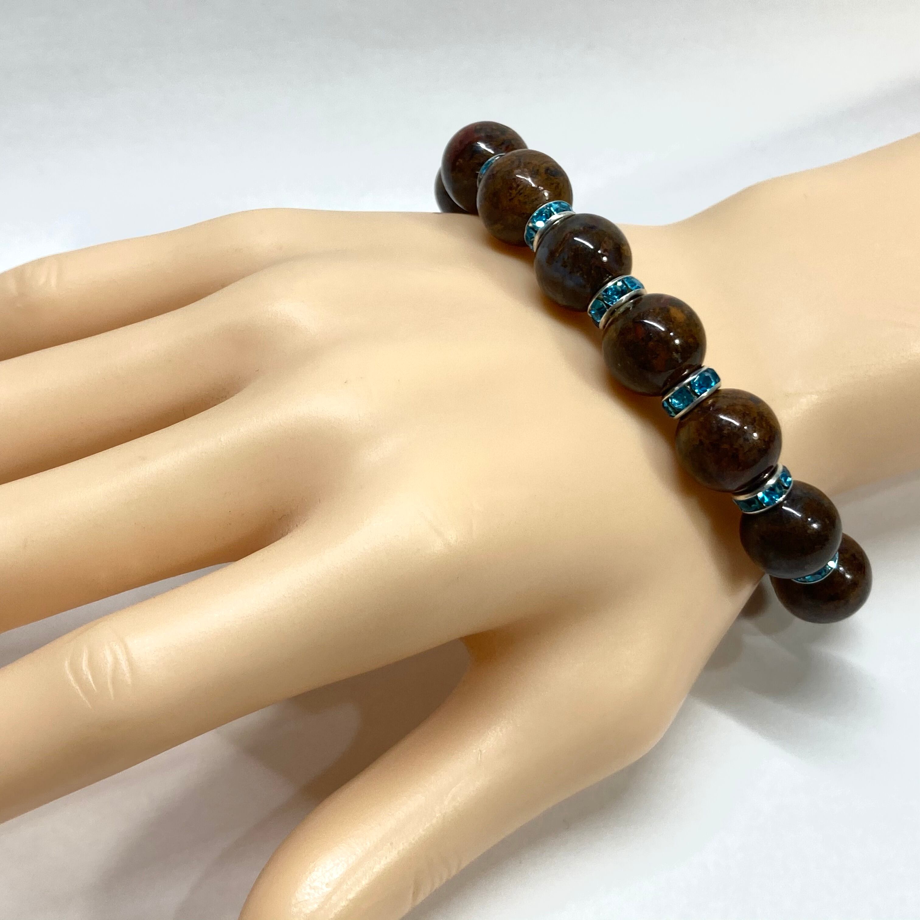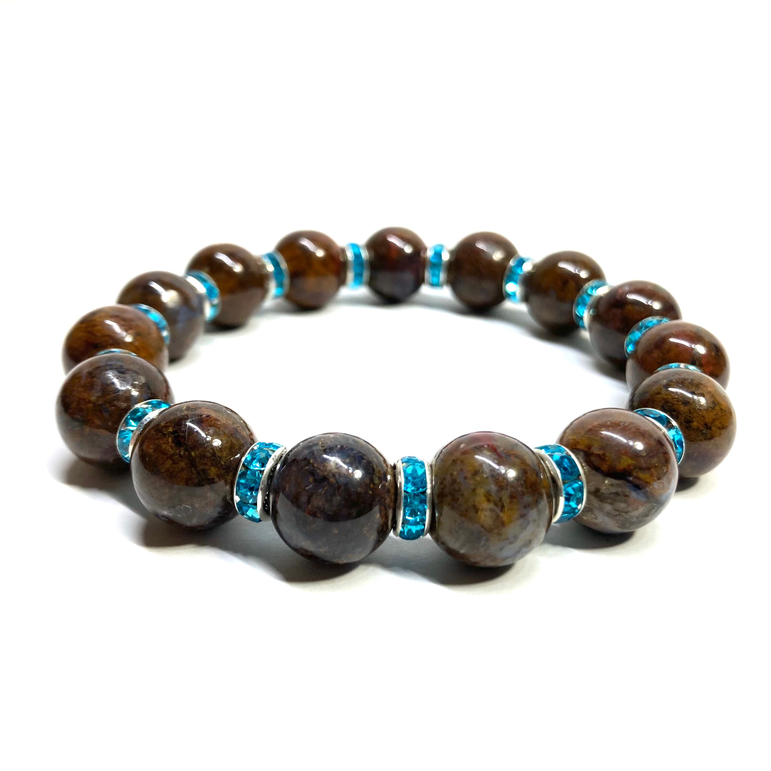 こちらは、10mm玉のピーターサイトを使用したパワーストーンブレスレットです。間にはロンデルを挟み高級感を演出しております。男女問わずどんなコーディネートとも合わせ易いブレスレットです。サイズは内周約18cmです。数に限りがございますので気になる方はお早めにどうぞ。